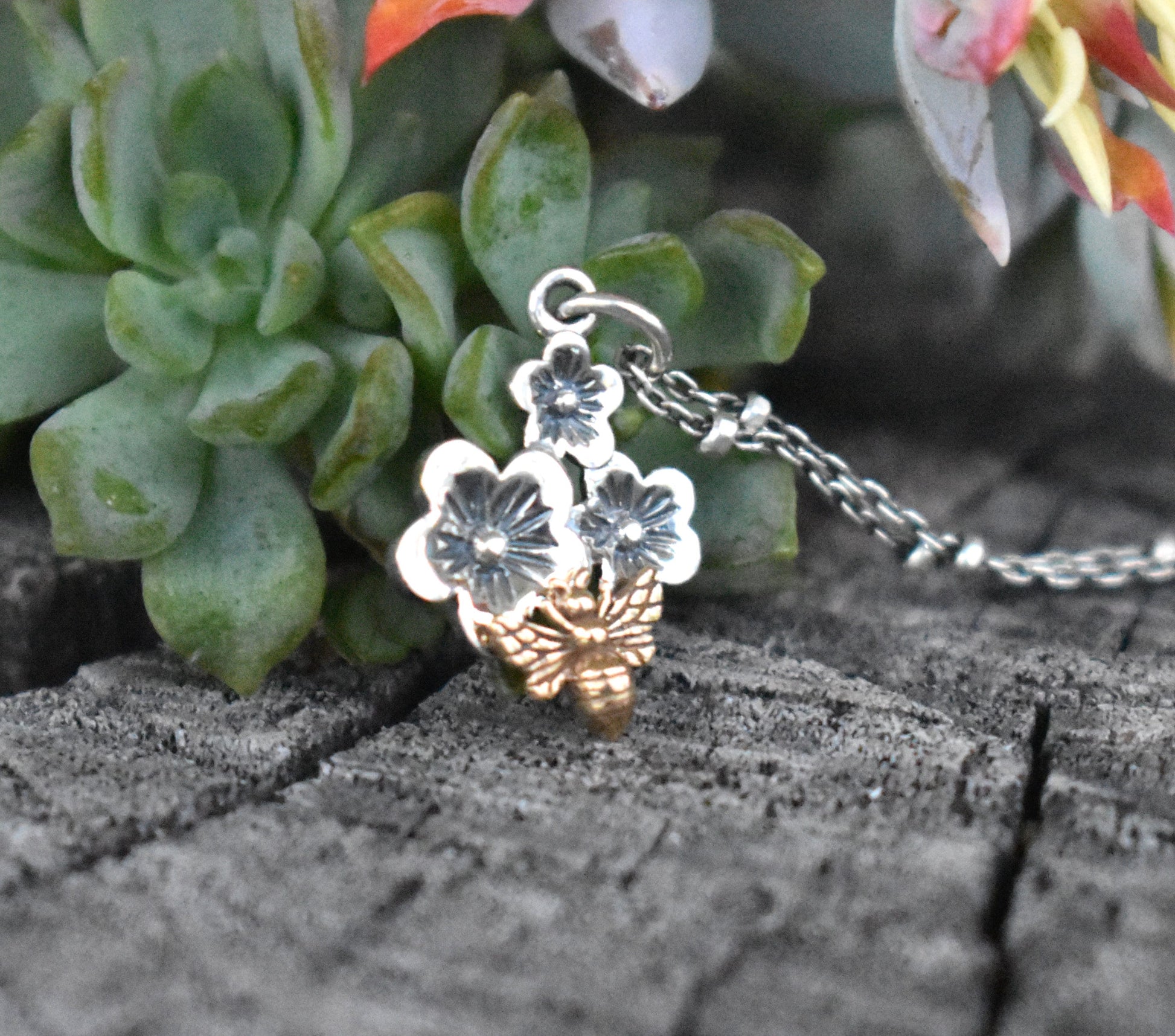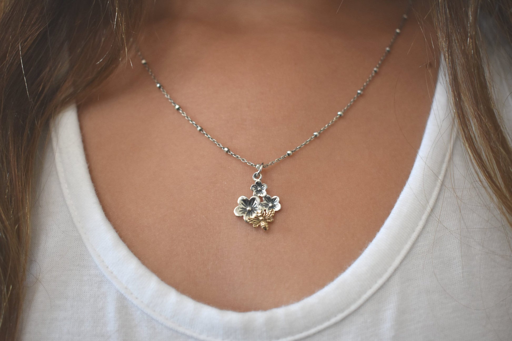 Cherry Blossom Necklace- Honeybee Necklace, Bee Jewelry, Gold Bee Necklace