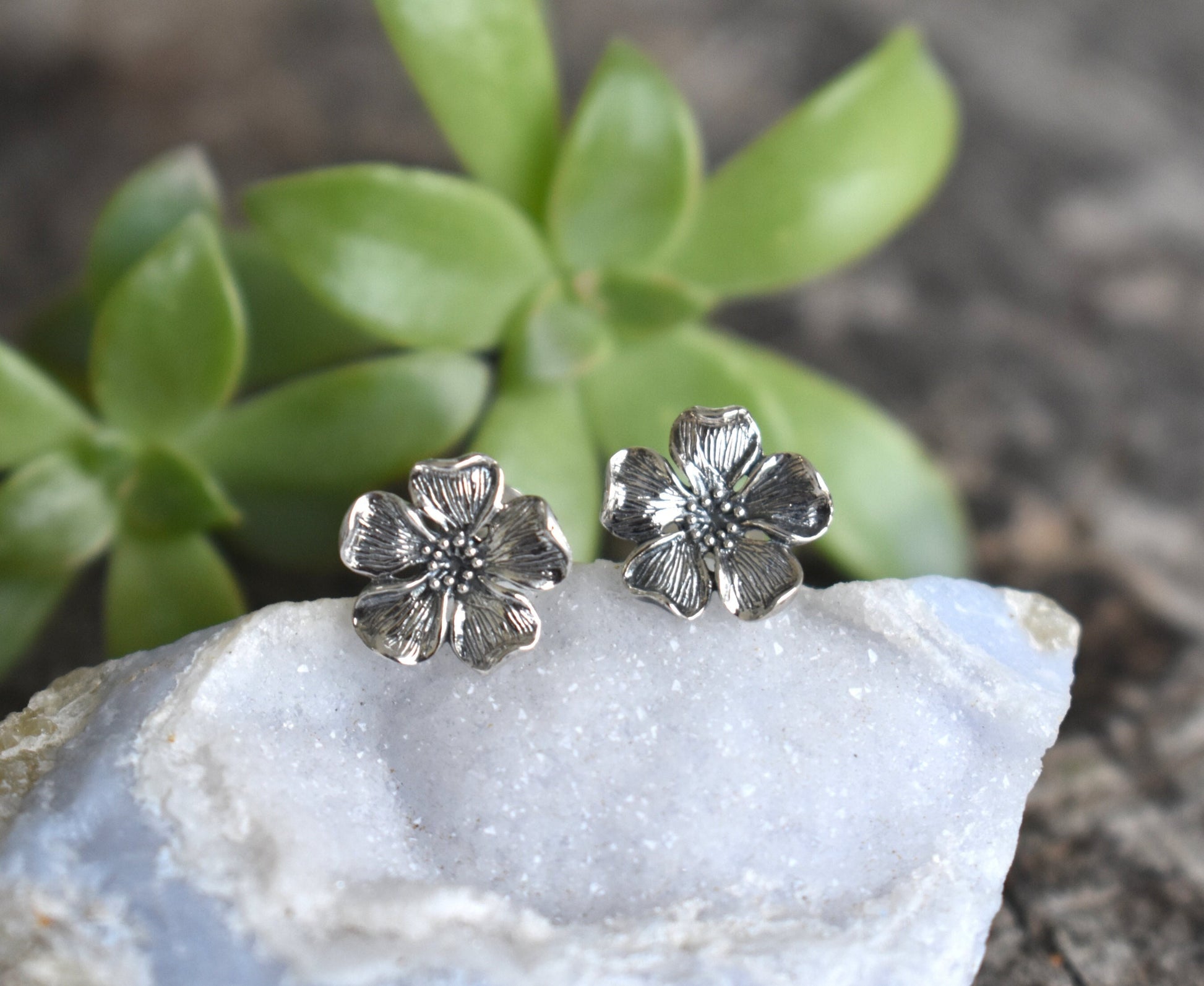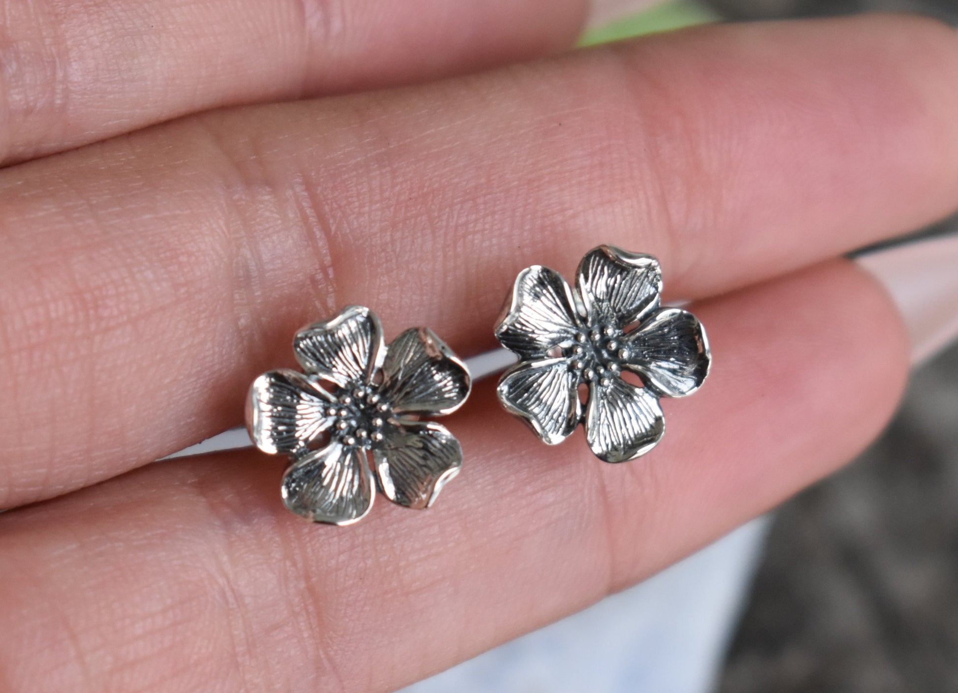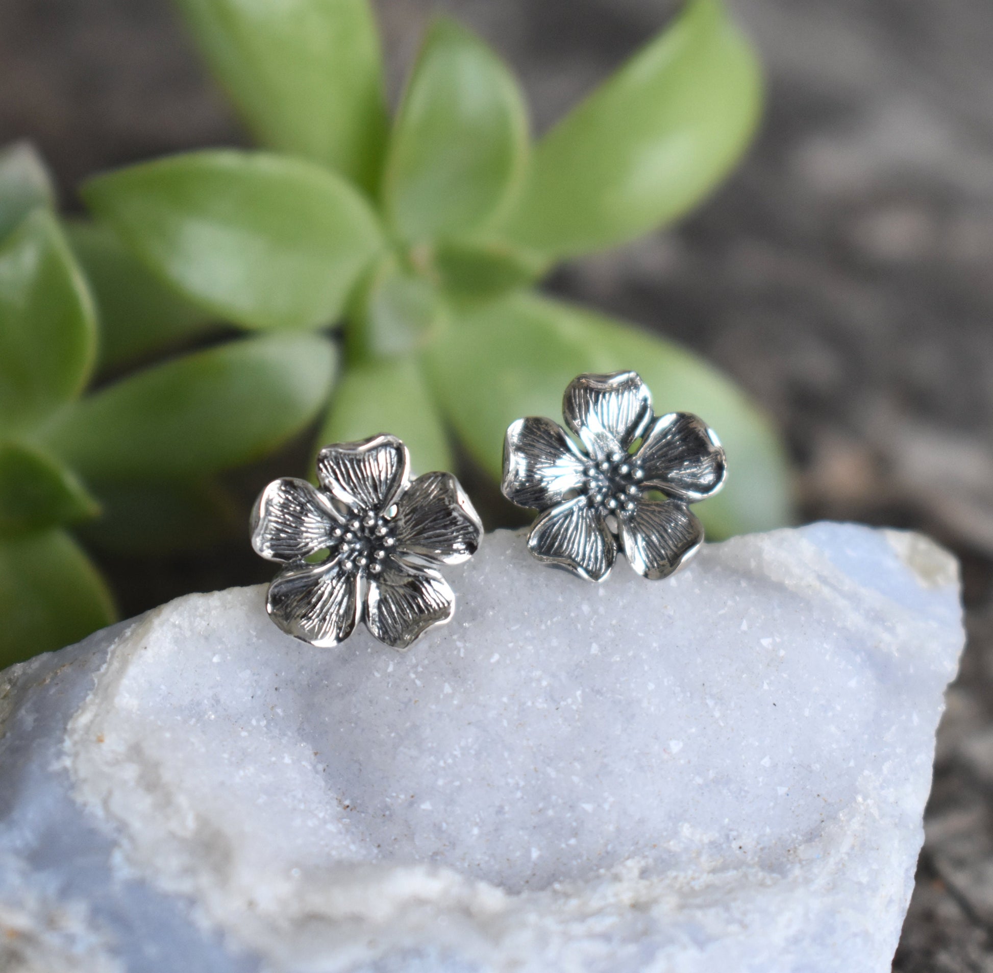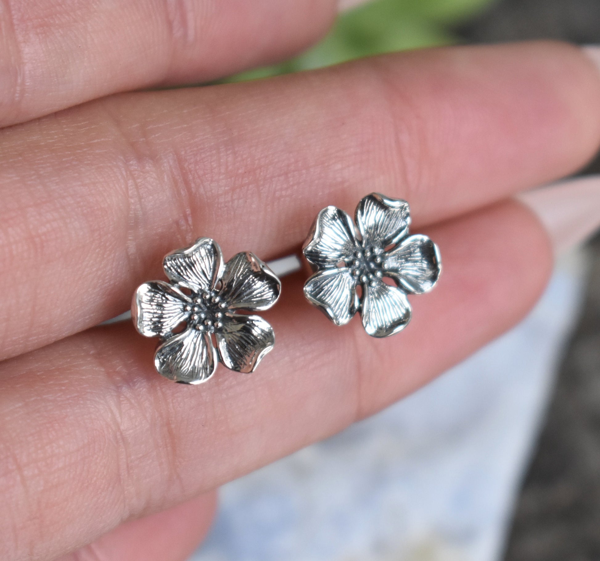 Cherry Blossom Earrings- Cherry Blossom Studs, Flower Earrings-Silver Earrings