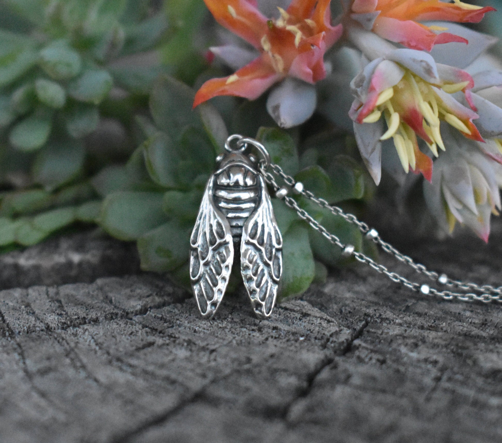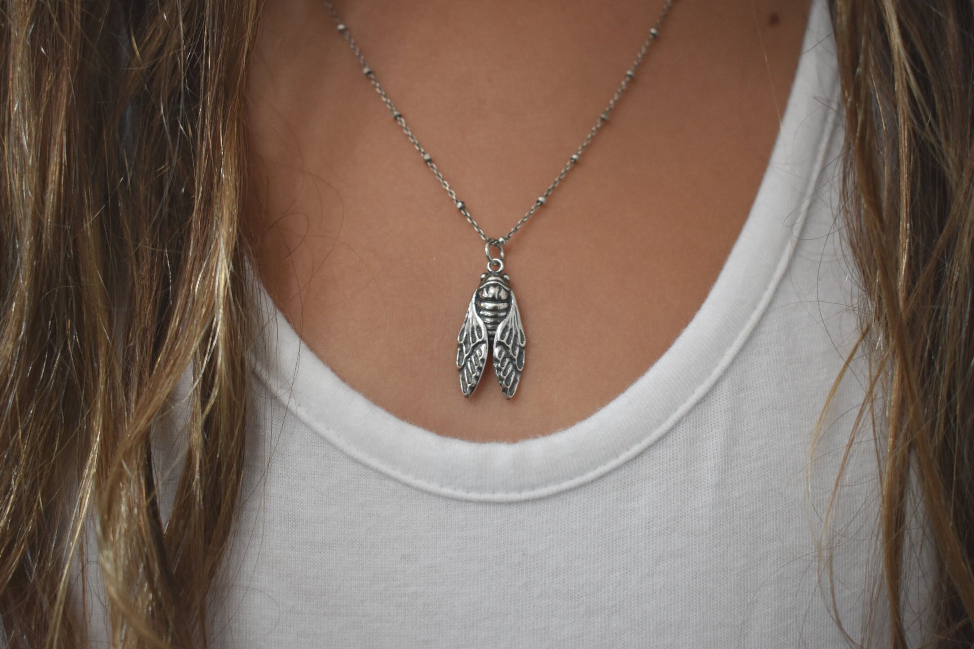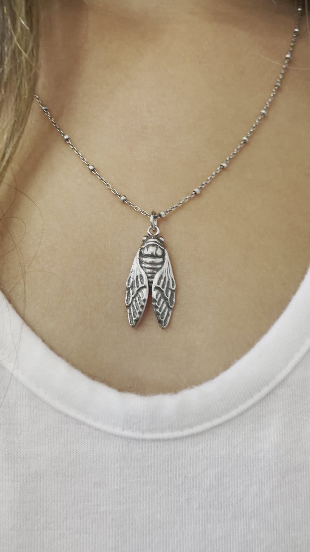 Sterling Silver Cicada Necklace details: