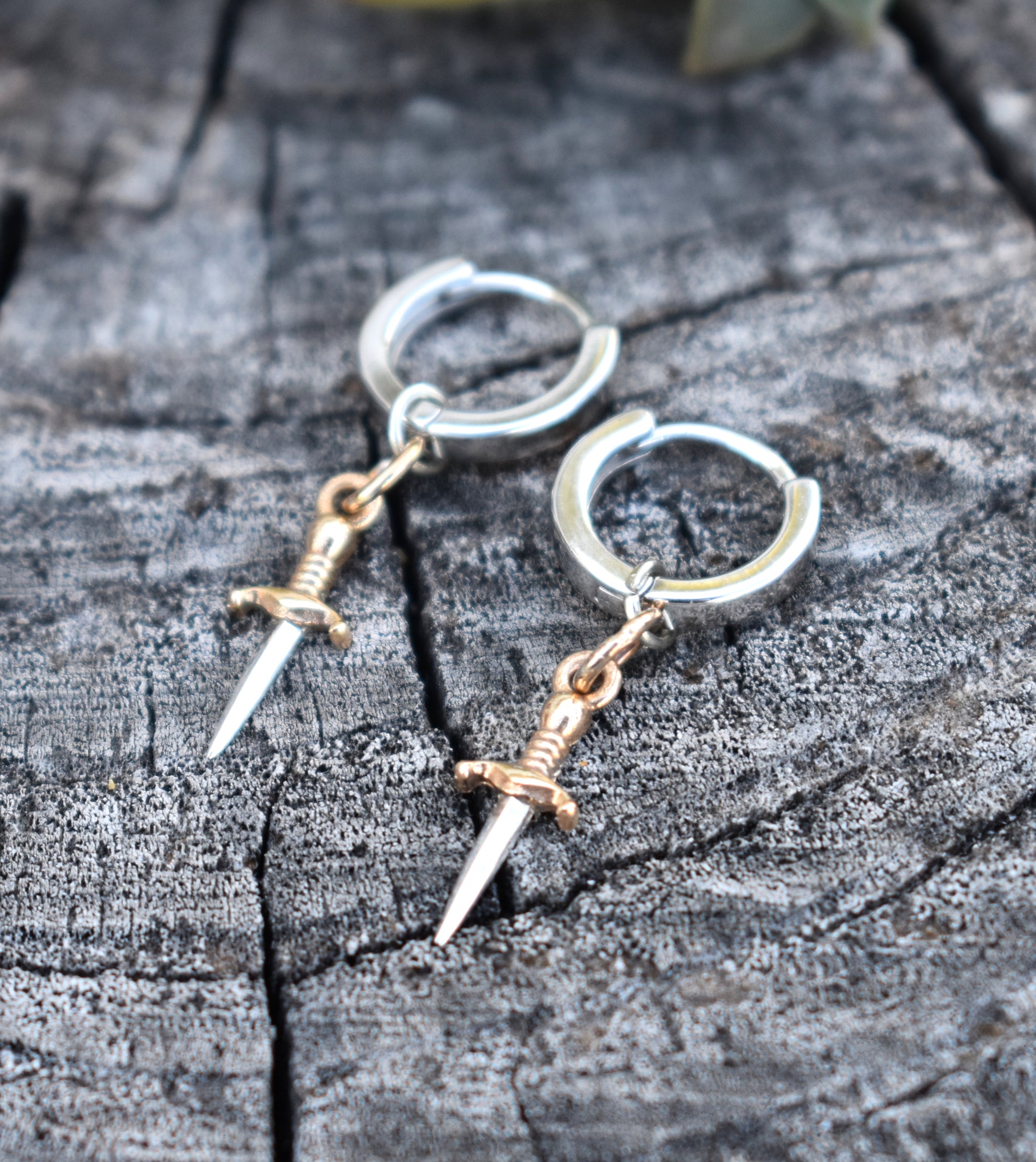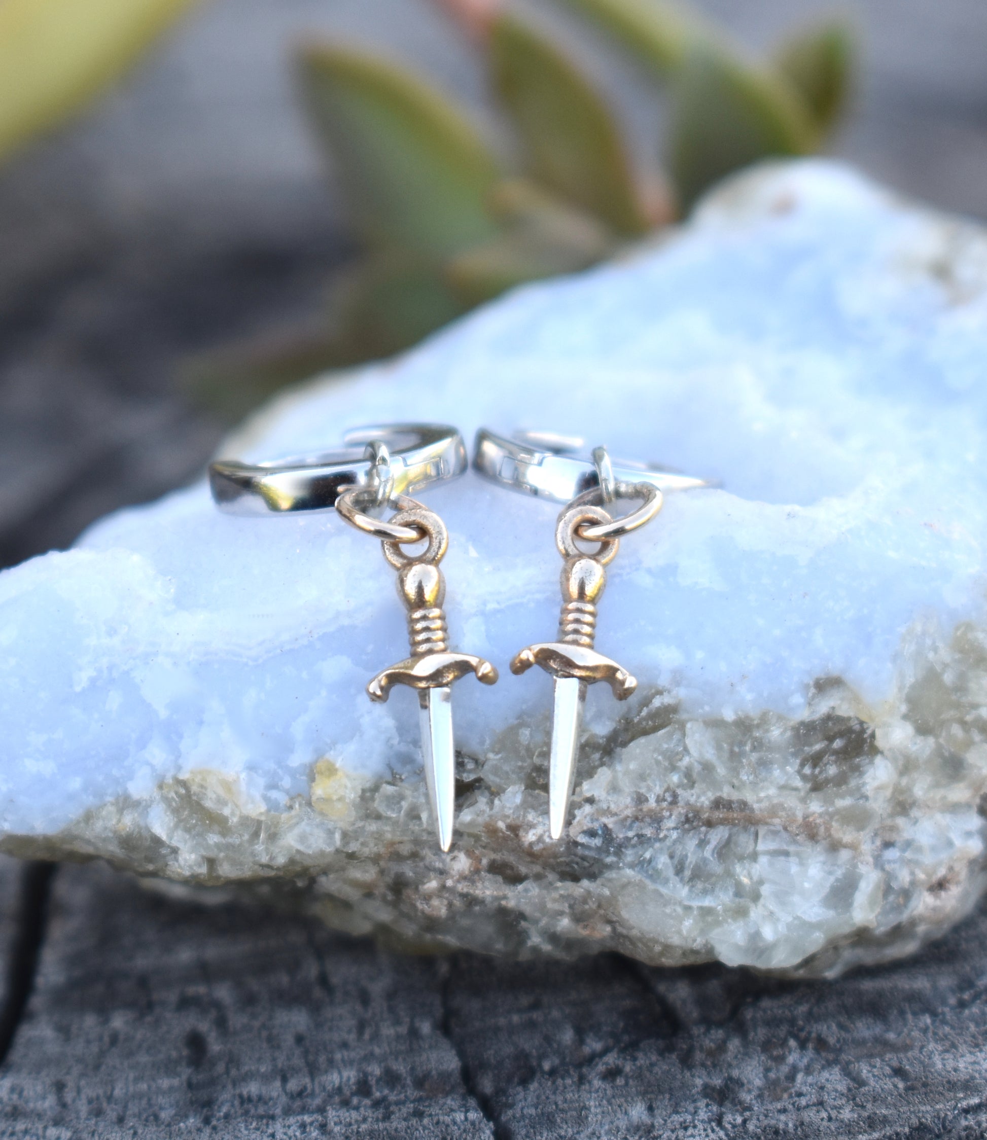 Dagger Huggie Hoop- Hoop Earrings, Dagger Earrings, Dagger Hoop- Dangle Earrings