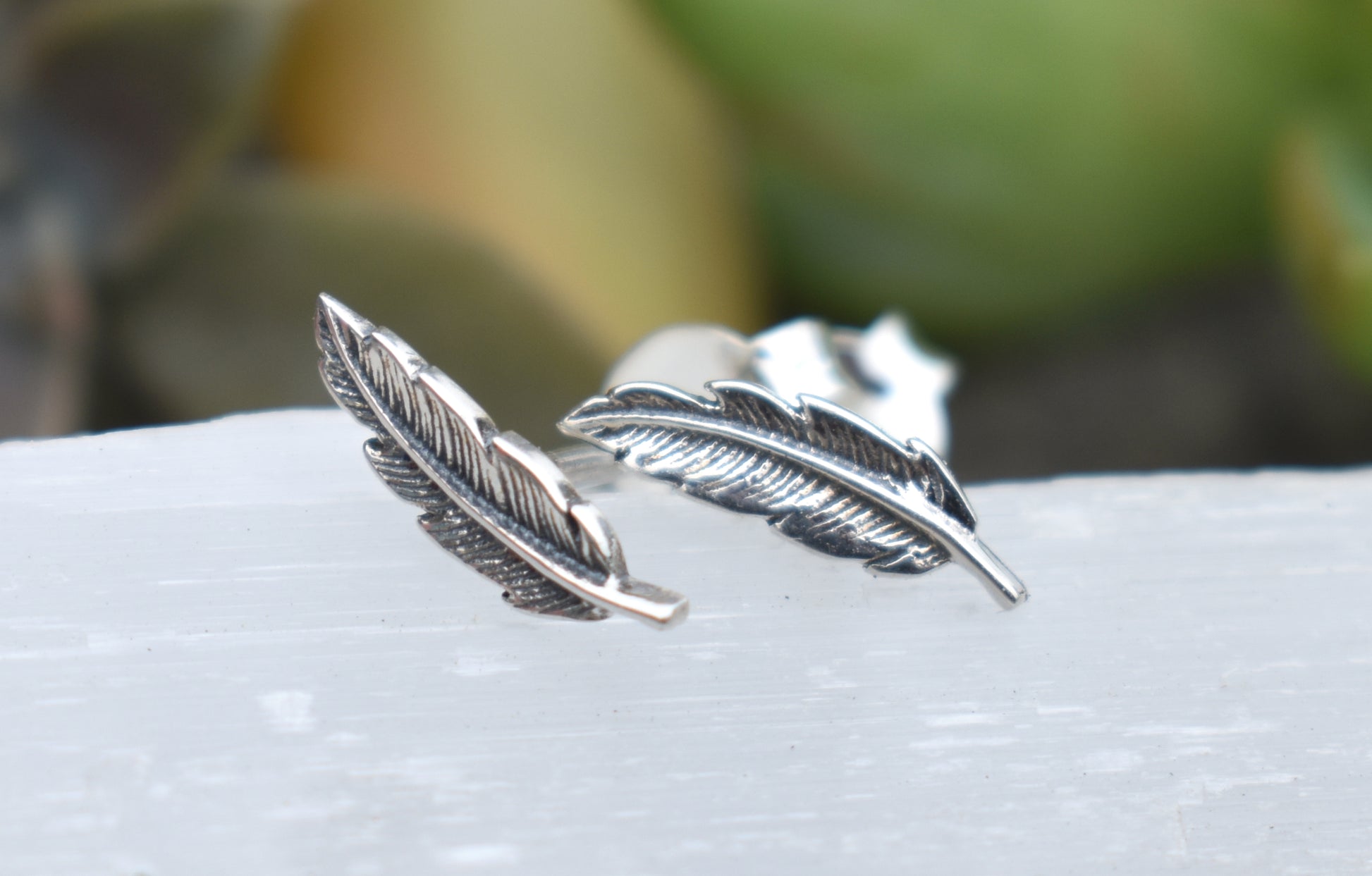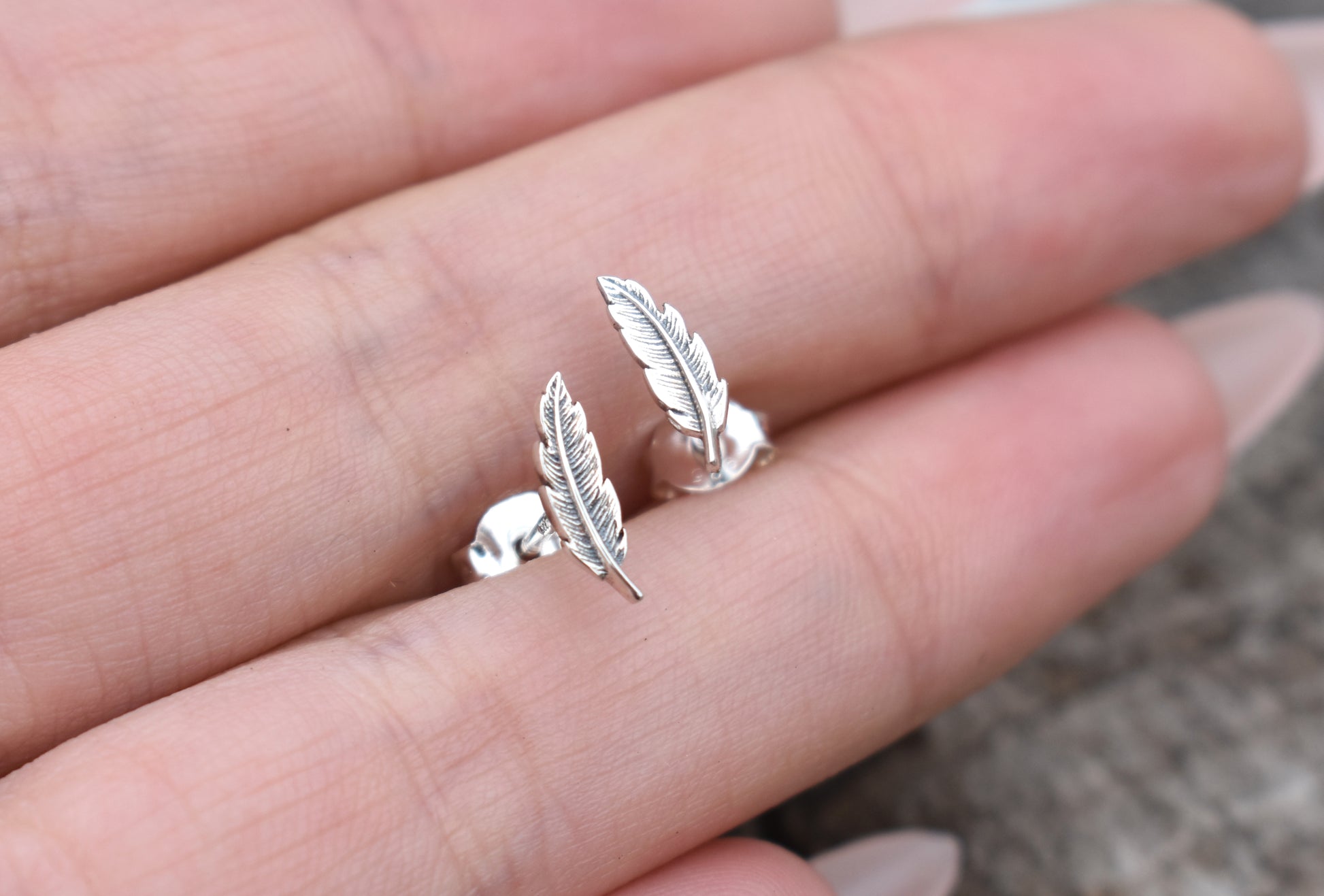 Feather Earrings- Feather Studs, Feather Jewelry-Sterling Silver Feather Earrings