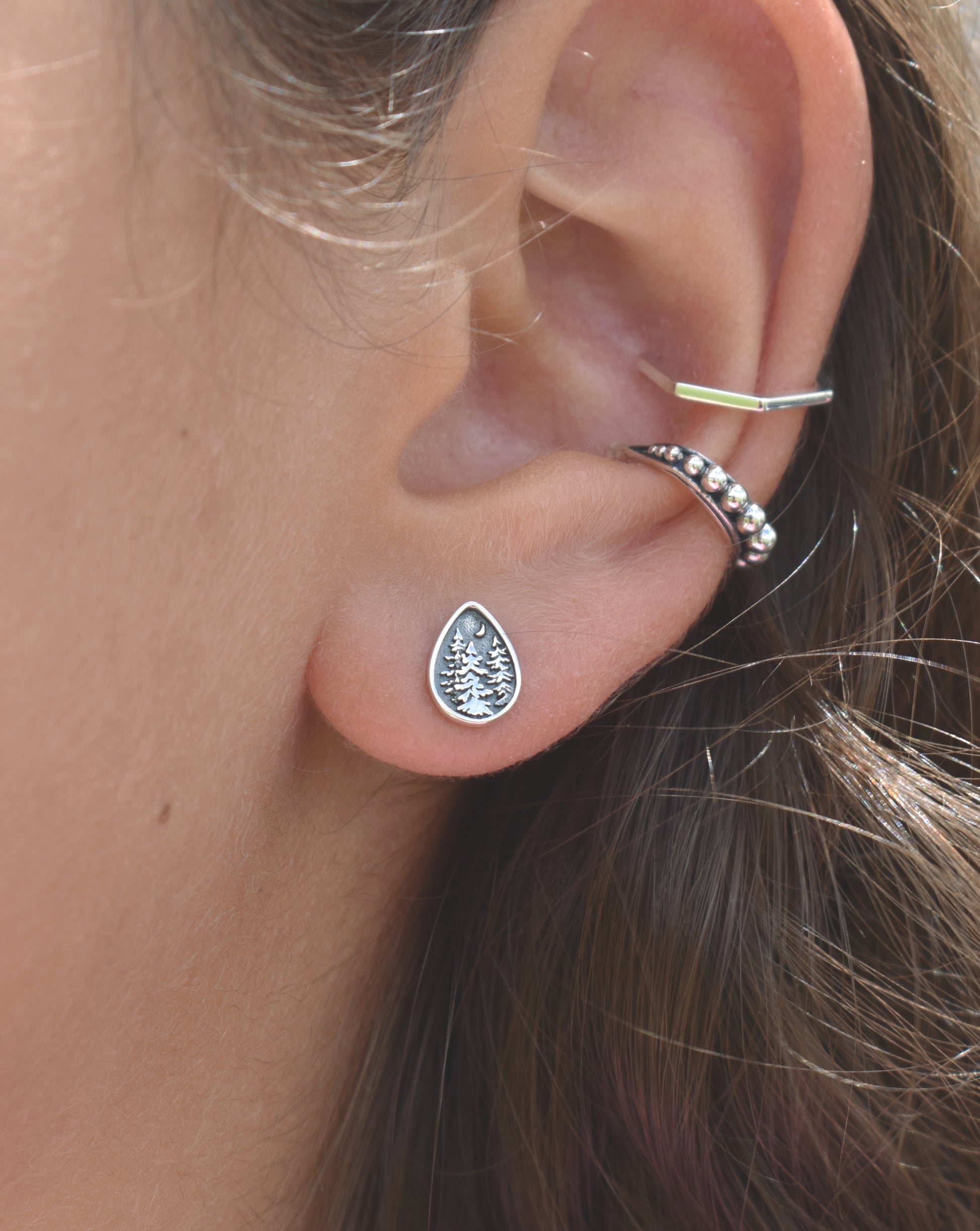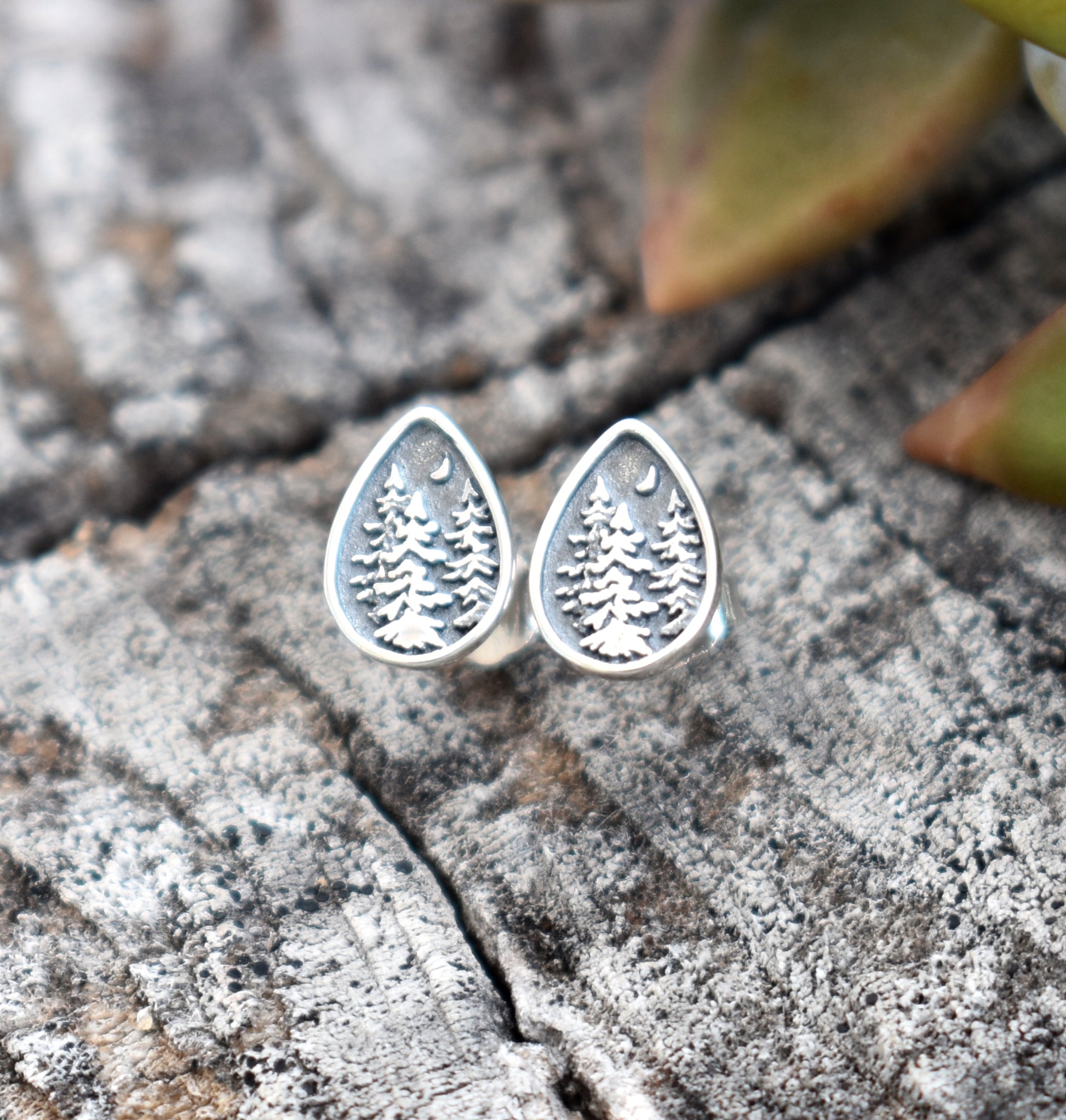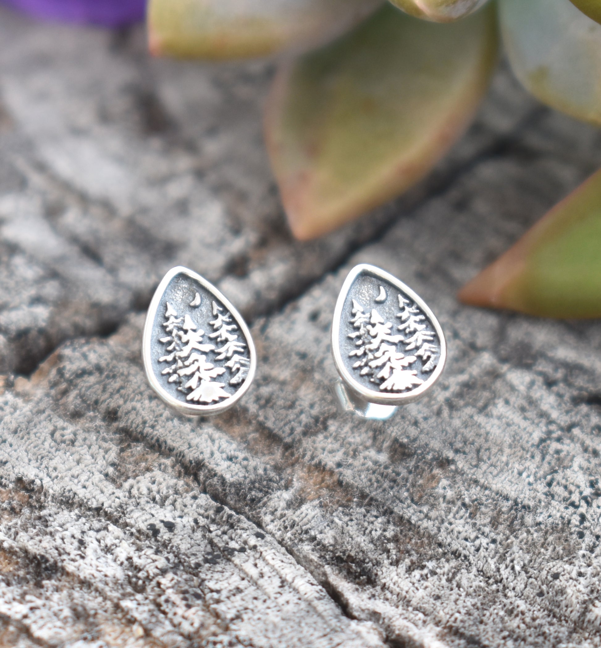 Forest Dweller Earrings-Tree Studs, Mountain Earrings-Sterling Silver Teardrop