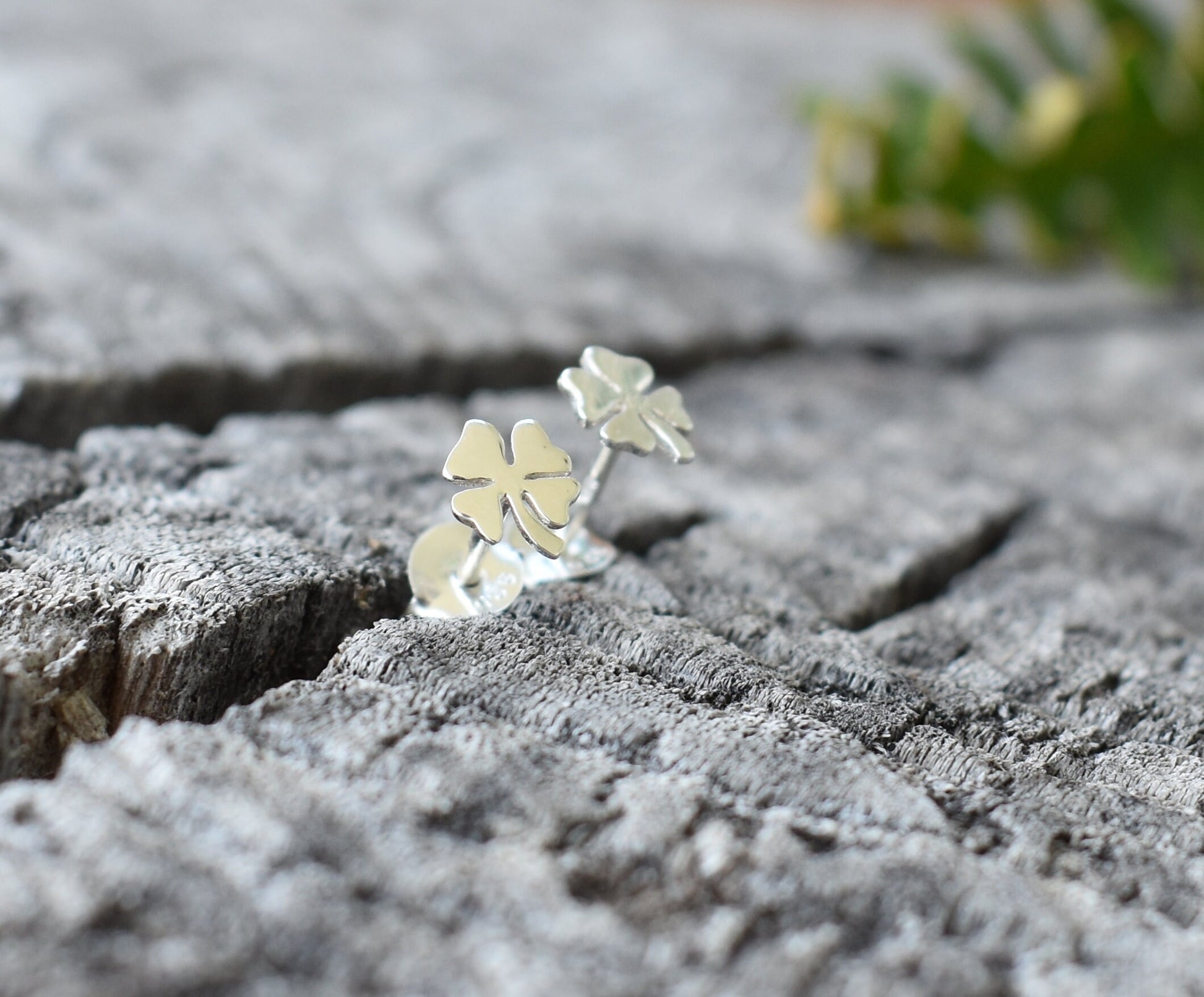 Four Leaf Clover Earrings- Clover Studs, Lucky Charm, Irish Luck-Silver Stud Earrings