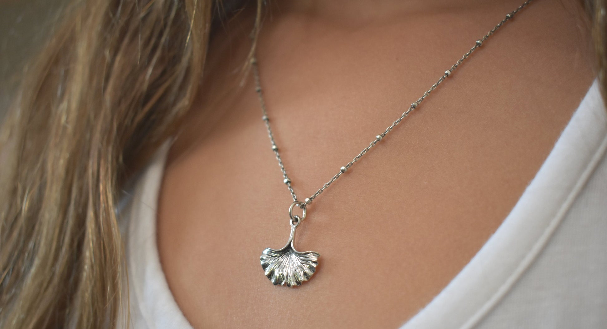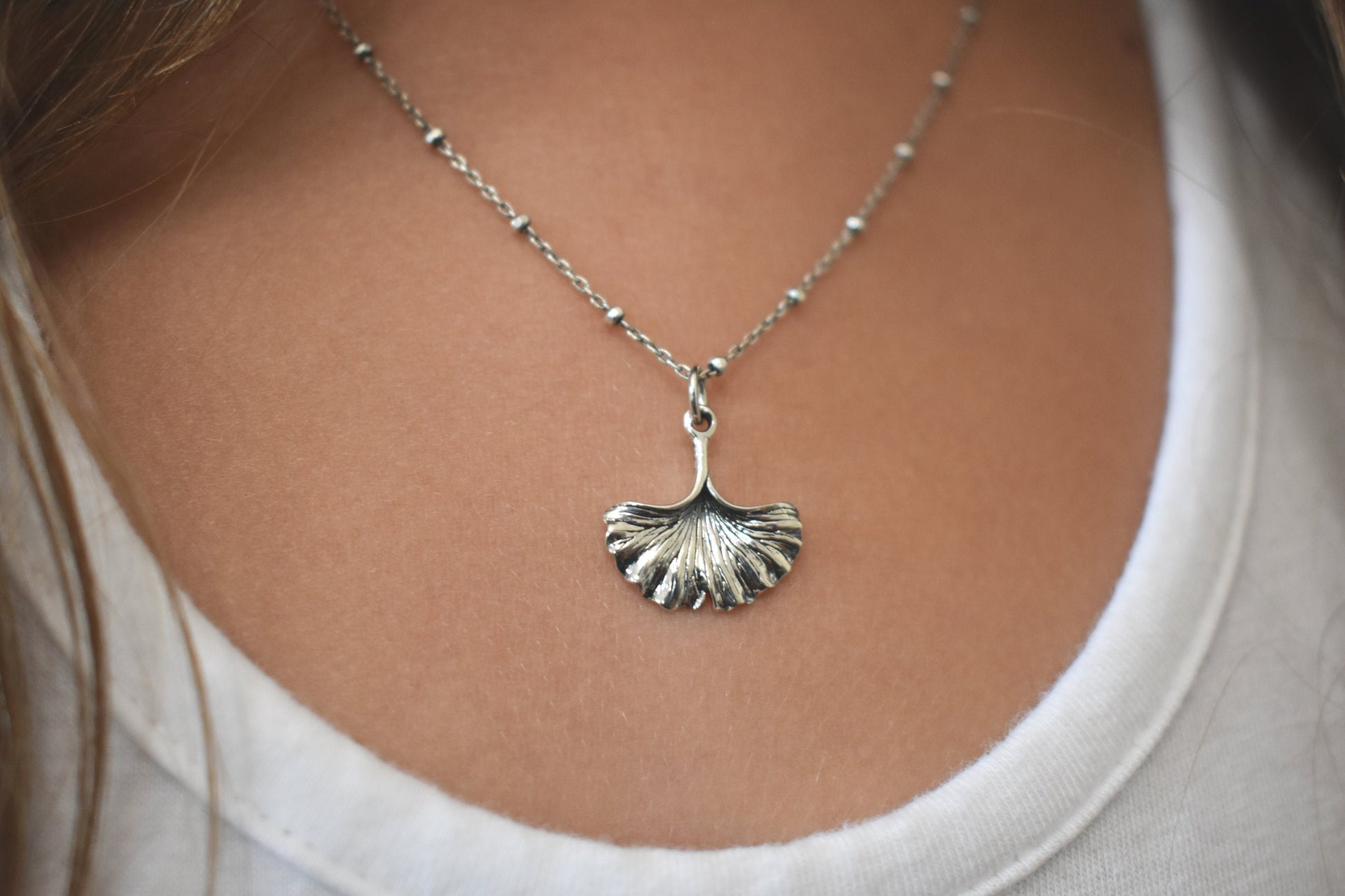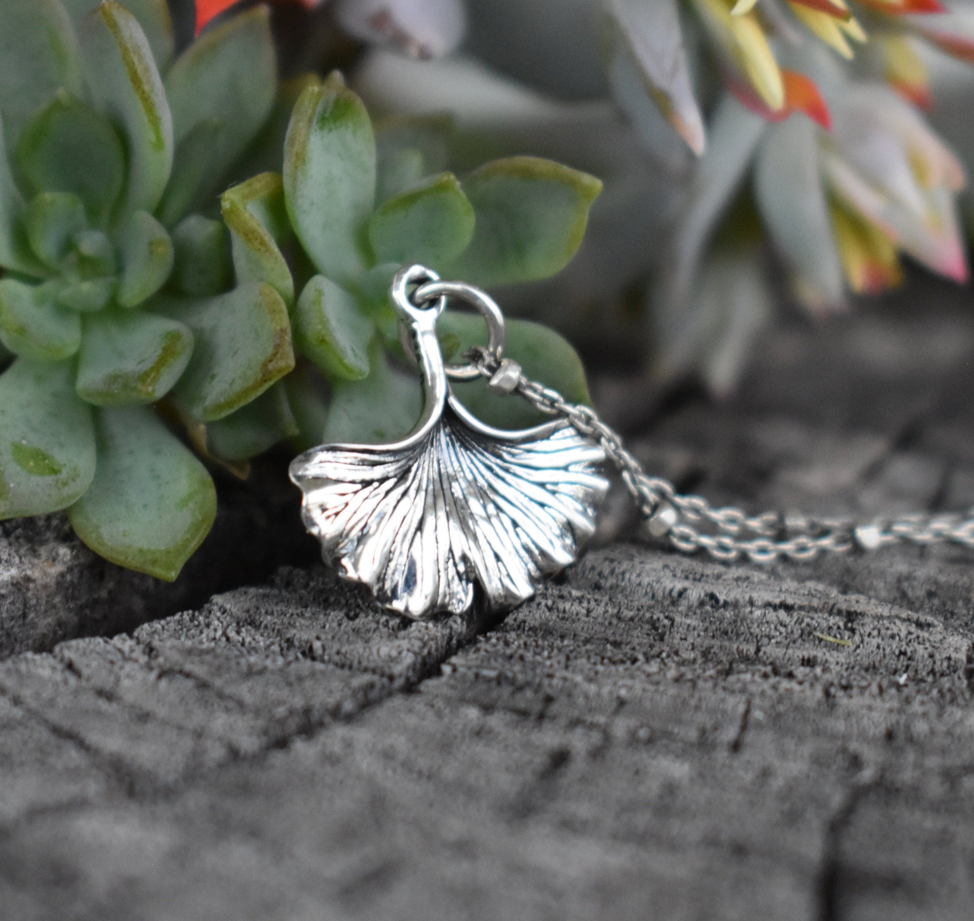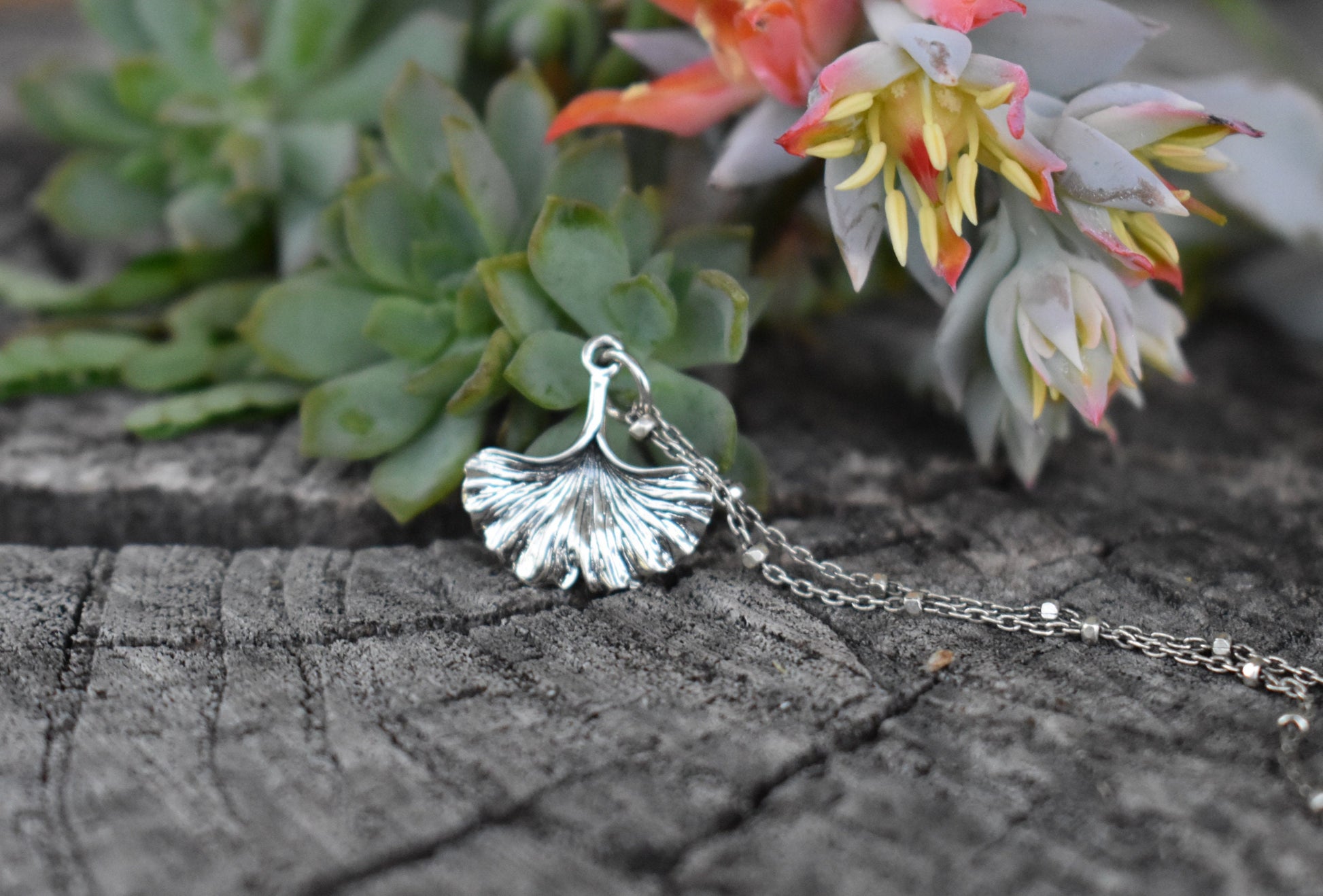 Ginkgo Necklace- Gingko Leaf, Gingko Biloba, Forest Necklace-Silver Necklace