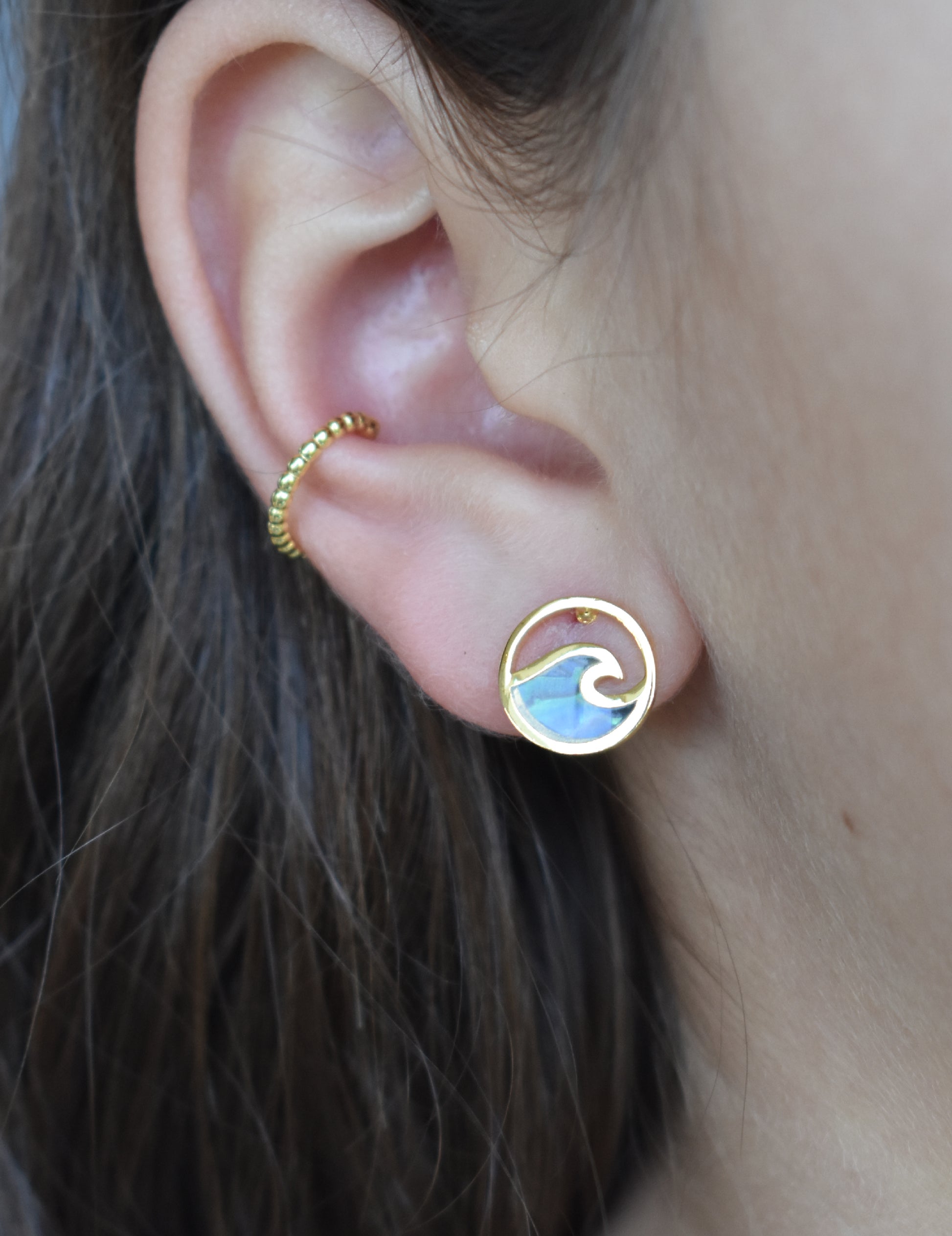 Gold Abalone Wave Studs: