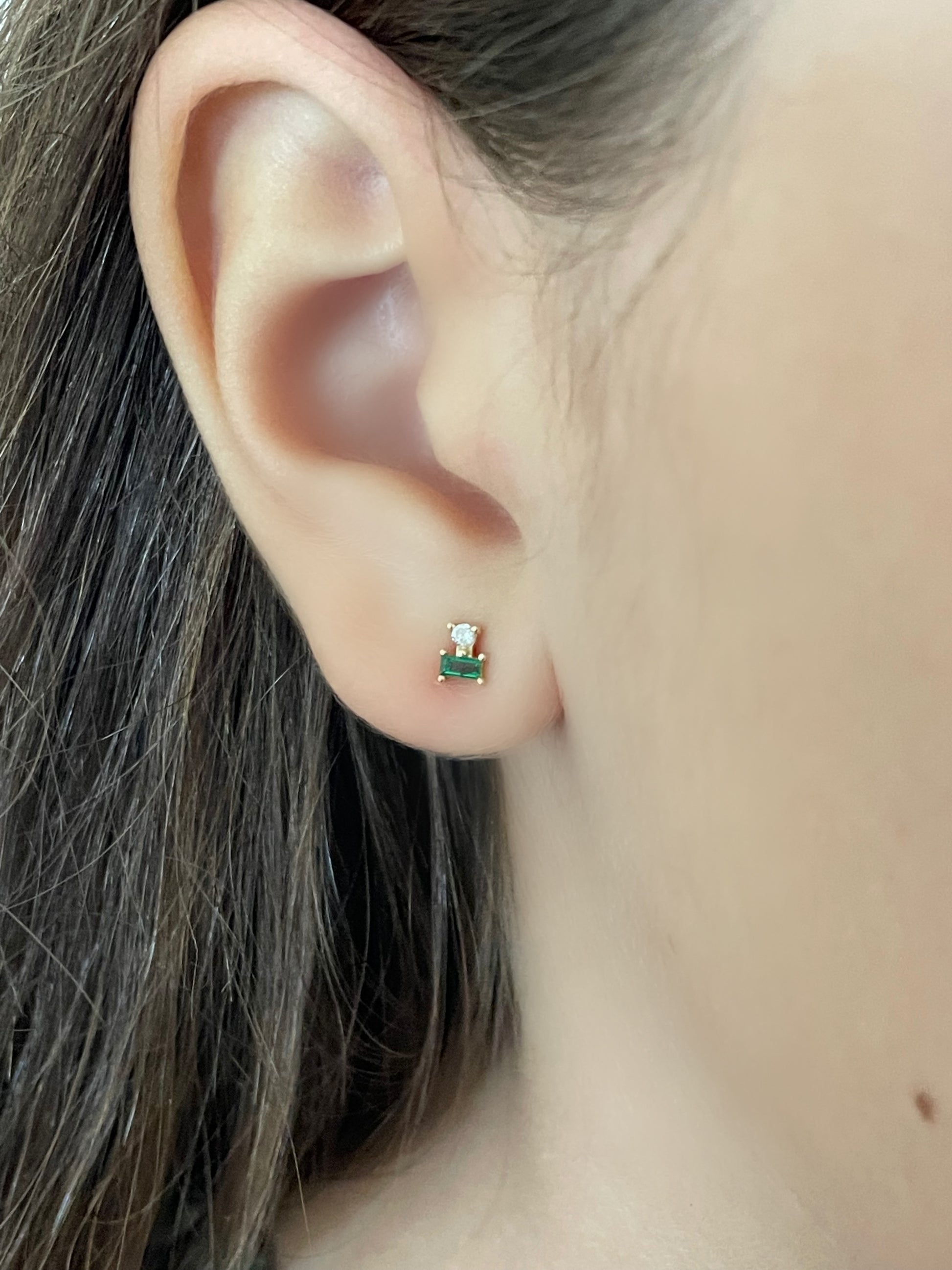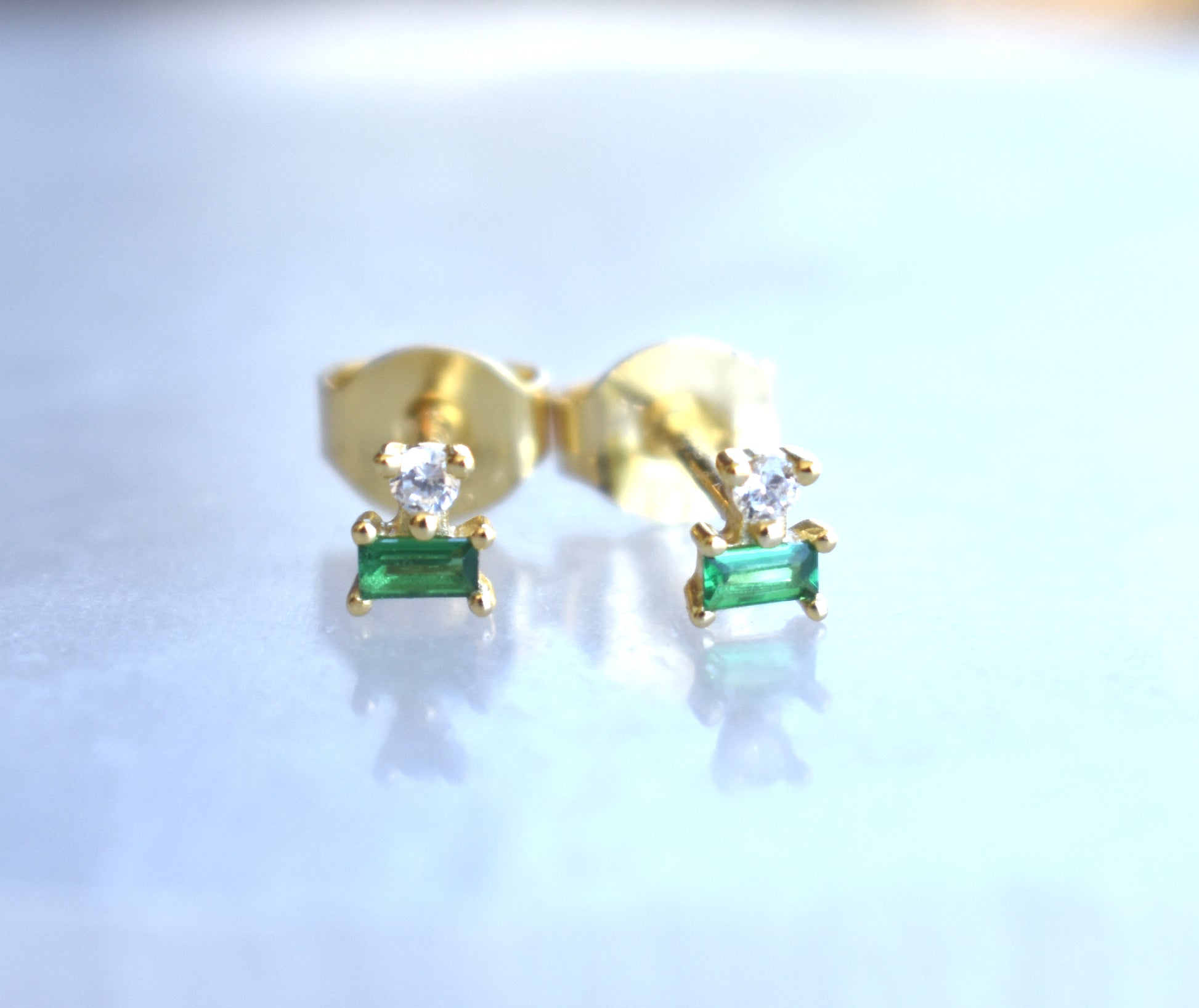 Gold Emerald Stacked Baguette Studs-14k Goldfill