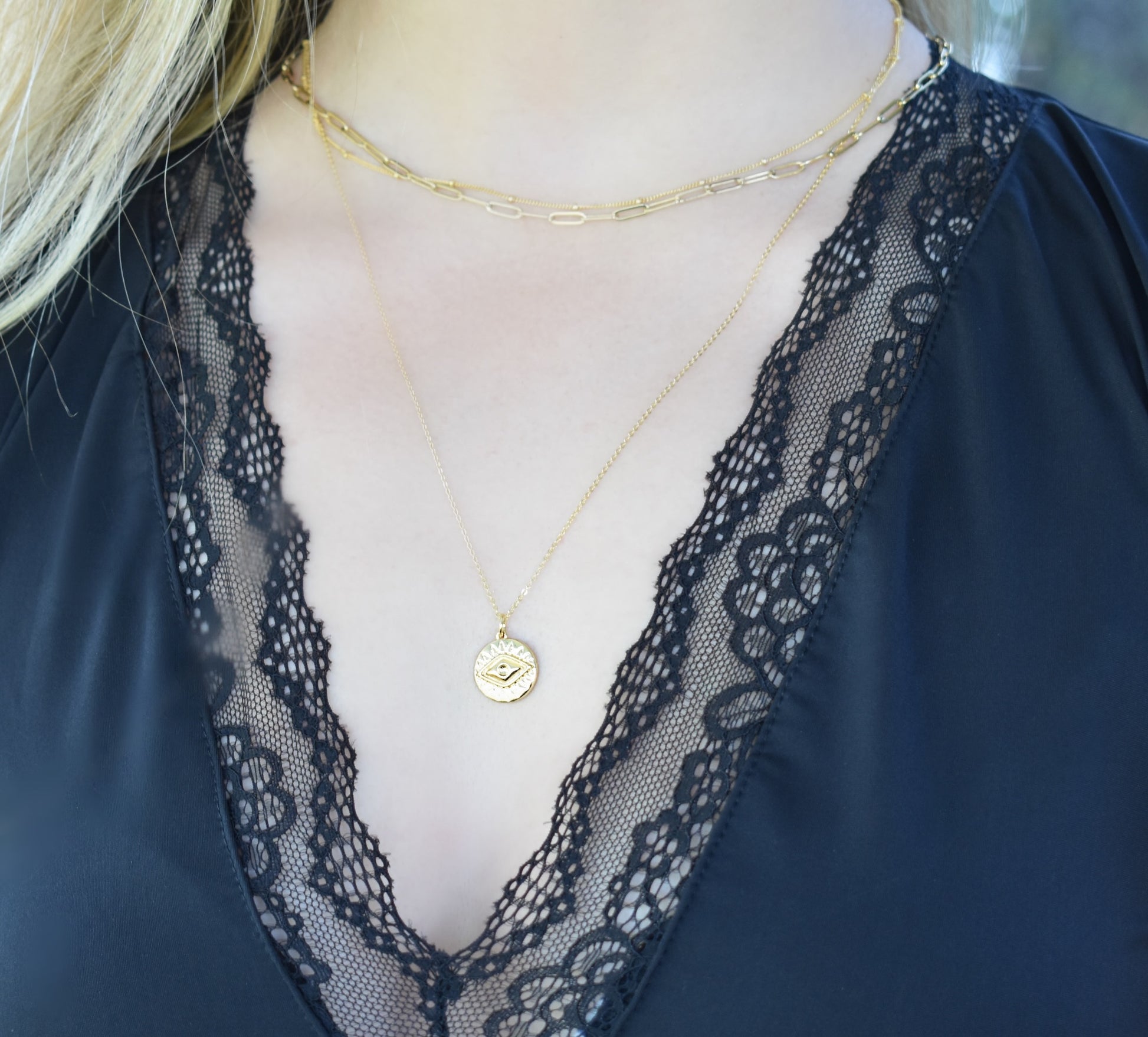 Gold Evil Eye Protection Necklace-Greek Mythology-14k Gold Fill