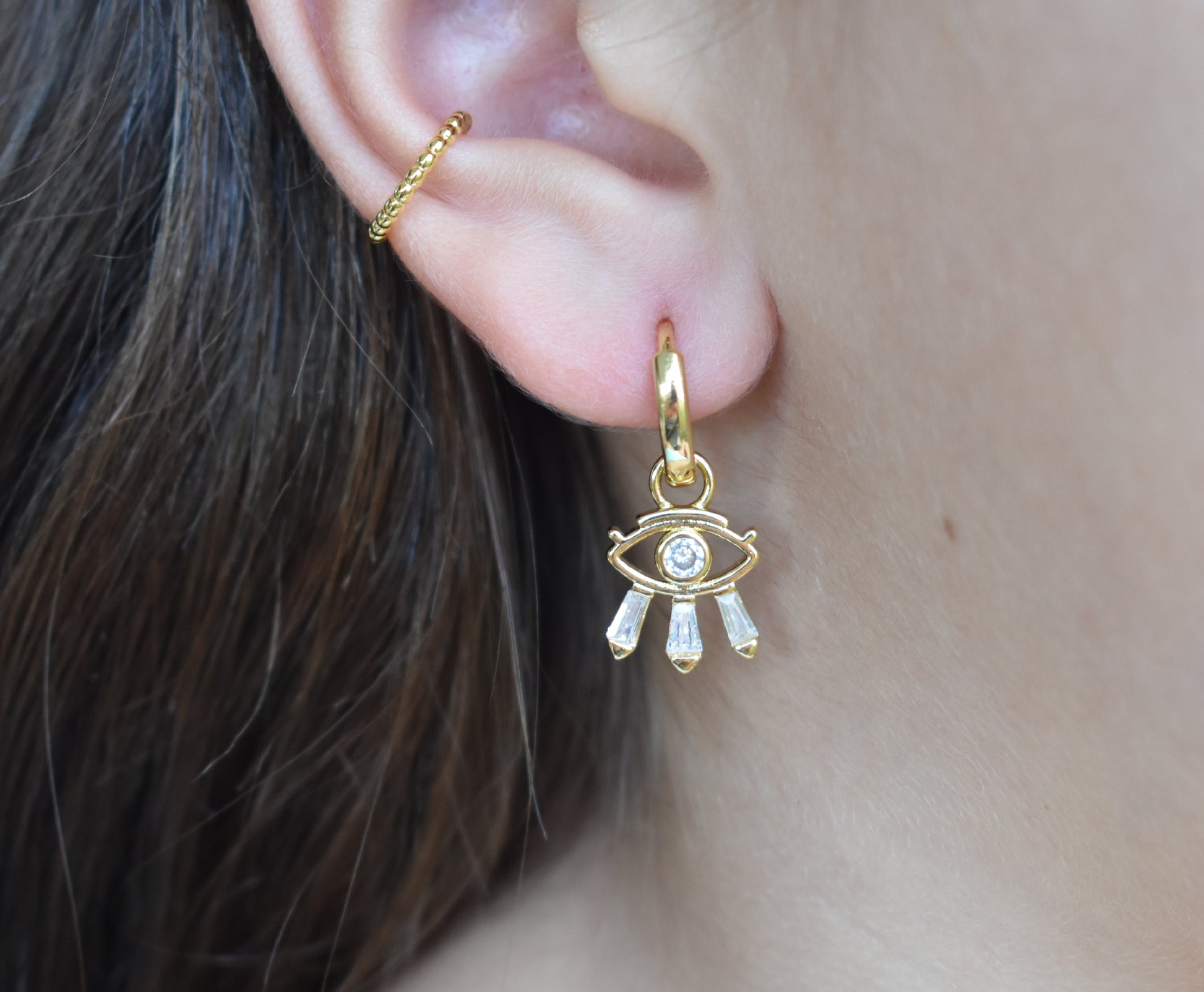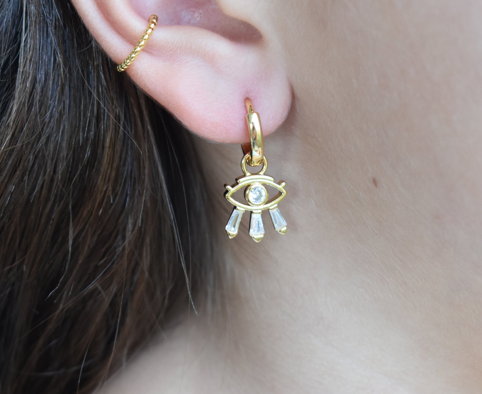 Gold Eye Huggie Hoops: