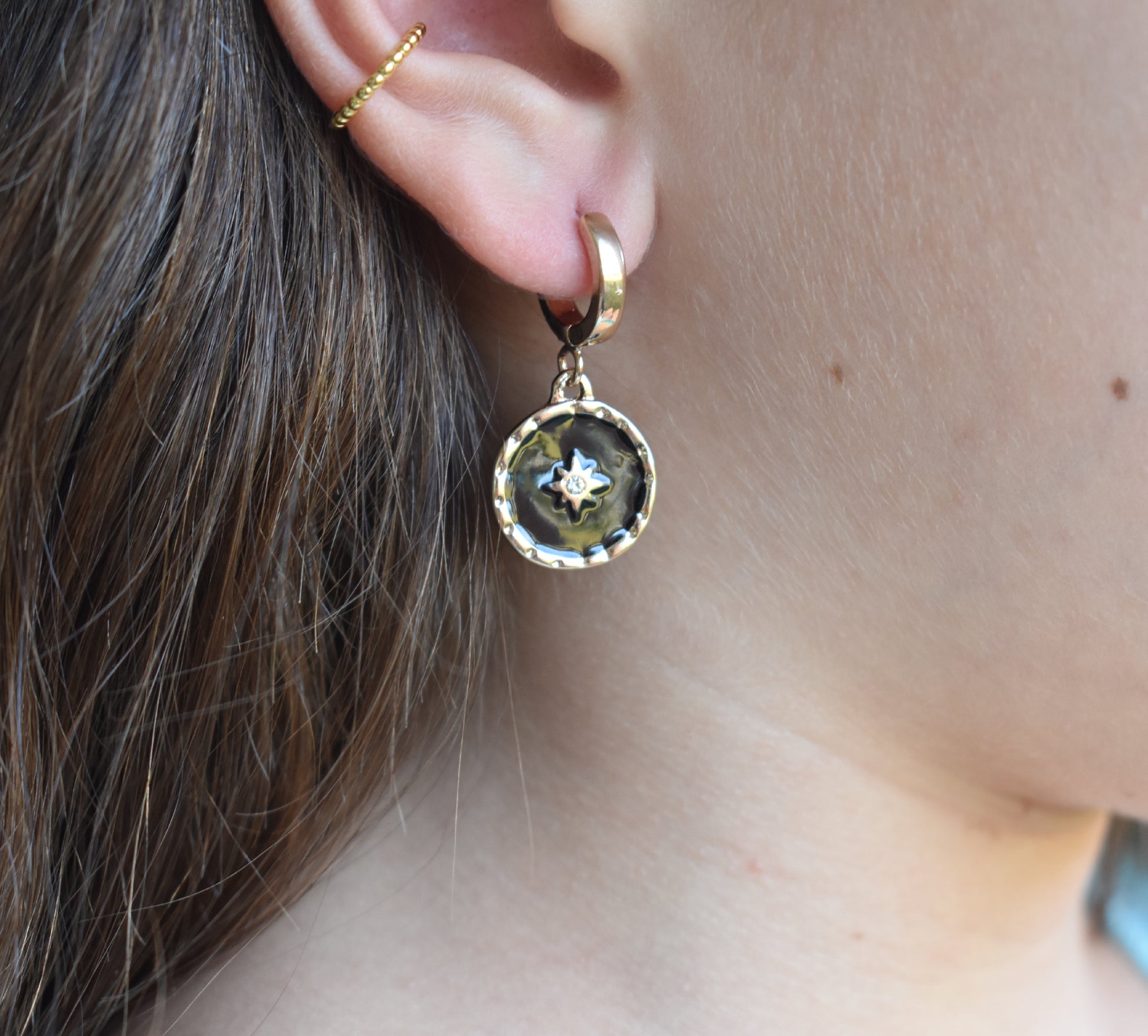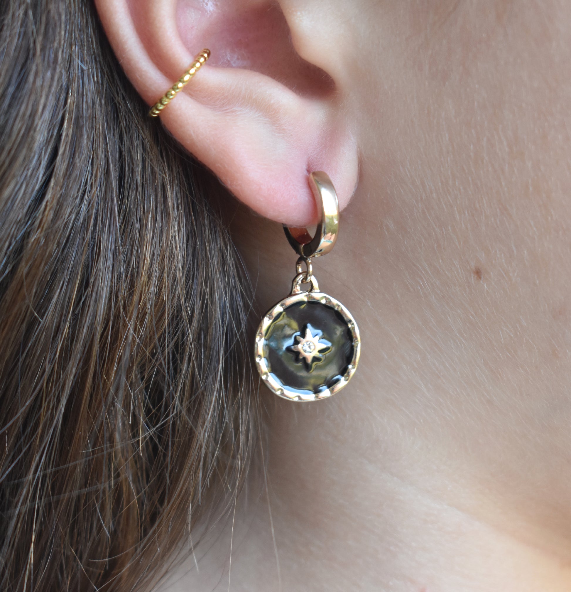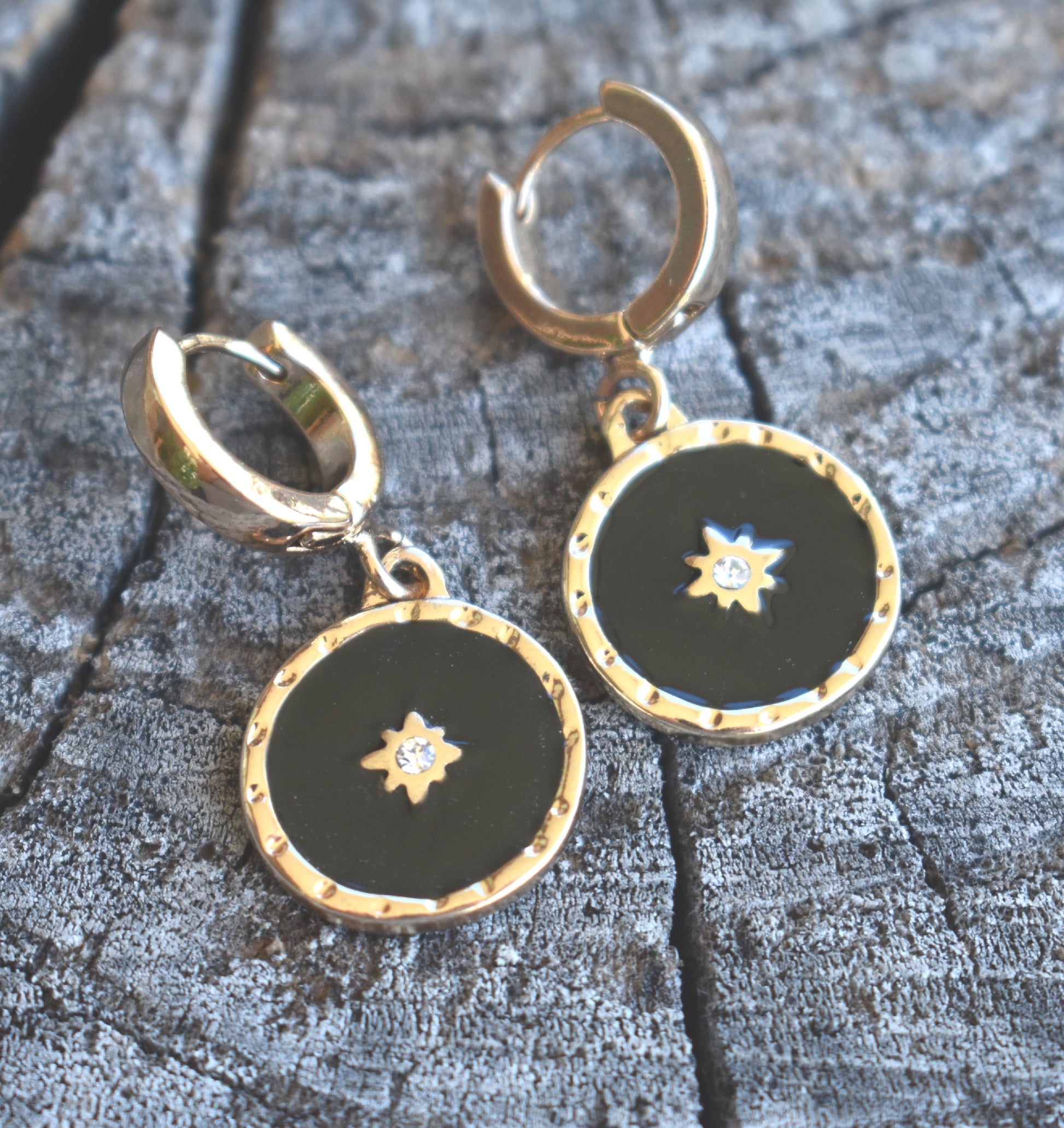 -Gold Star Charm measure 20mm Round, 5mm Star -Black Enamel Overlay