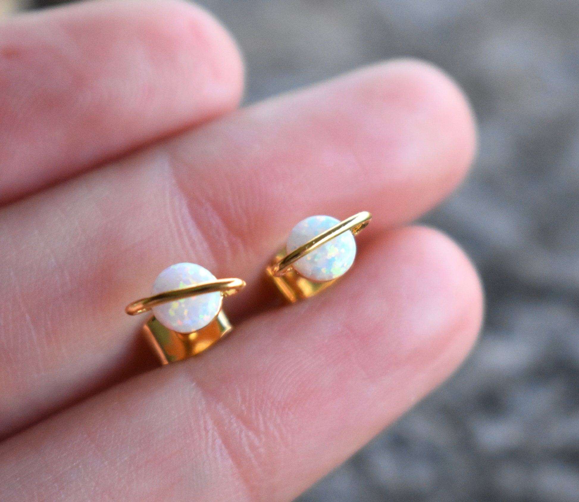 -Saturn planet 9mm x 6mm, 5mm Fire Opals