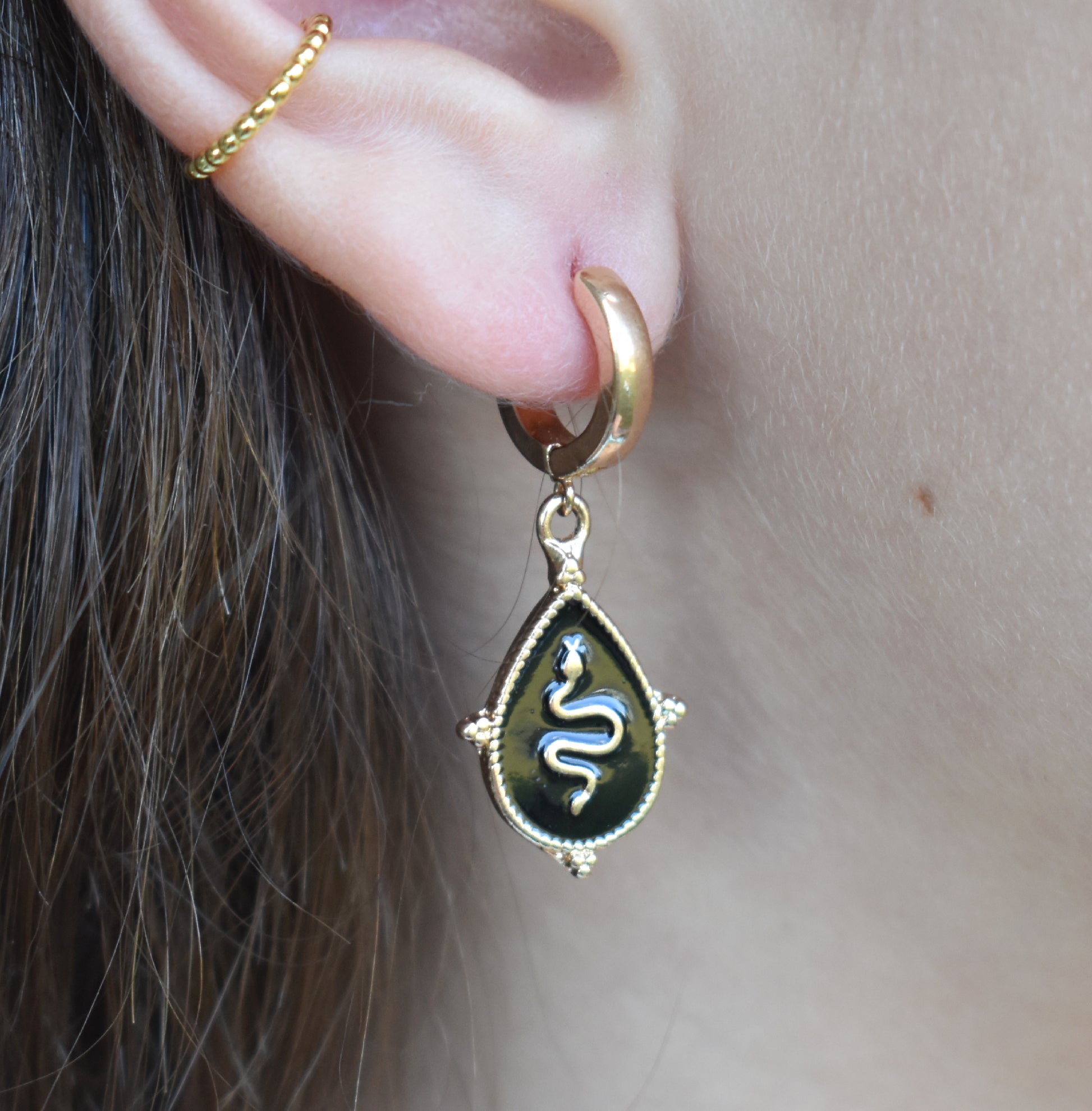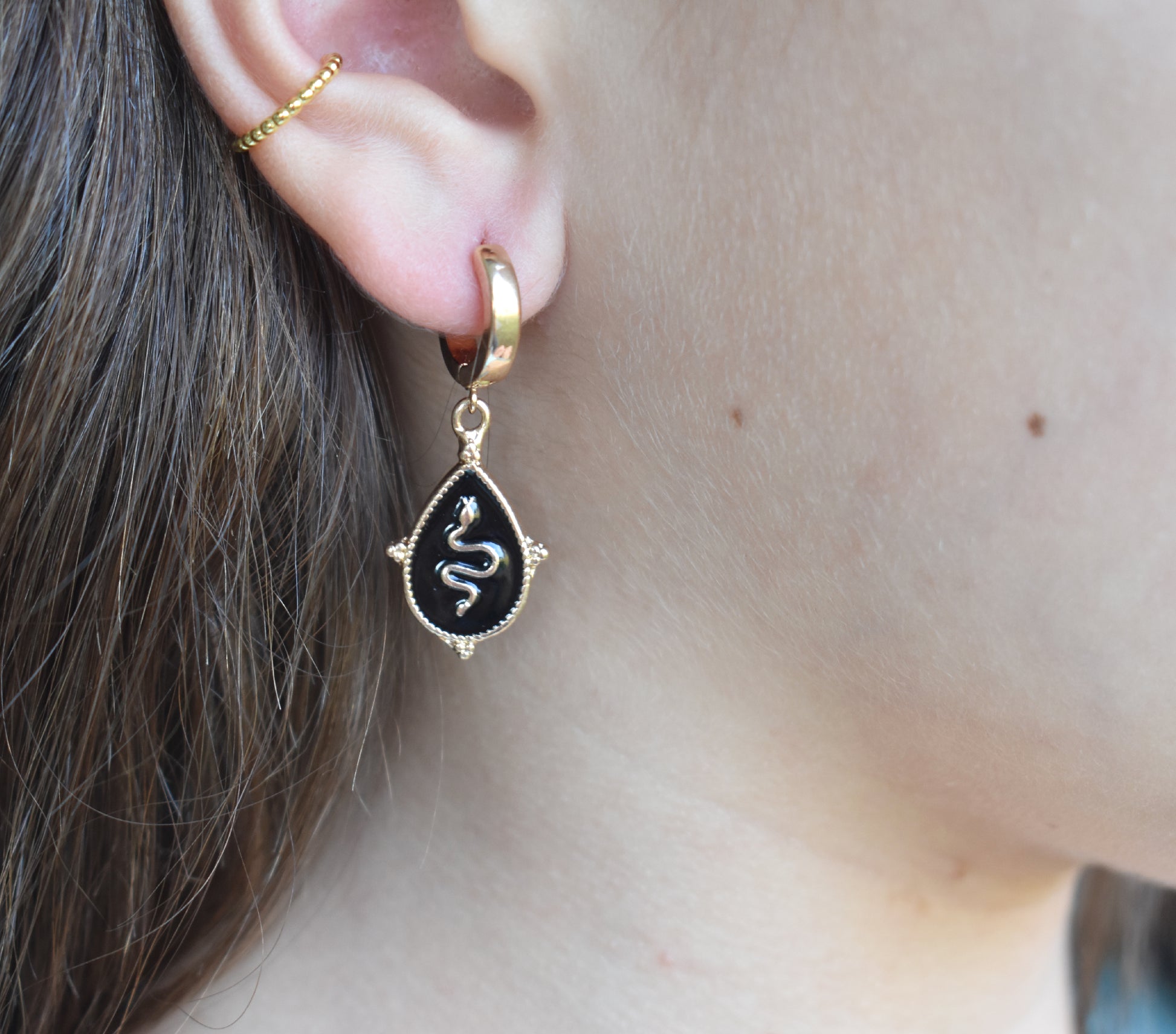 -Gold Snake Charm measure 20mm X 15mm-Black Enamel Overlay
