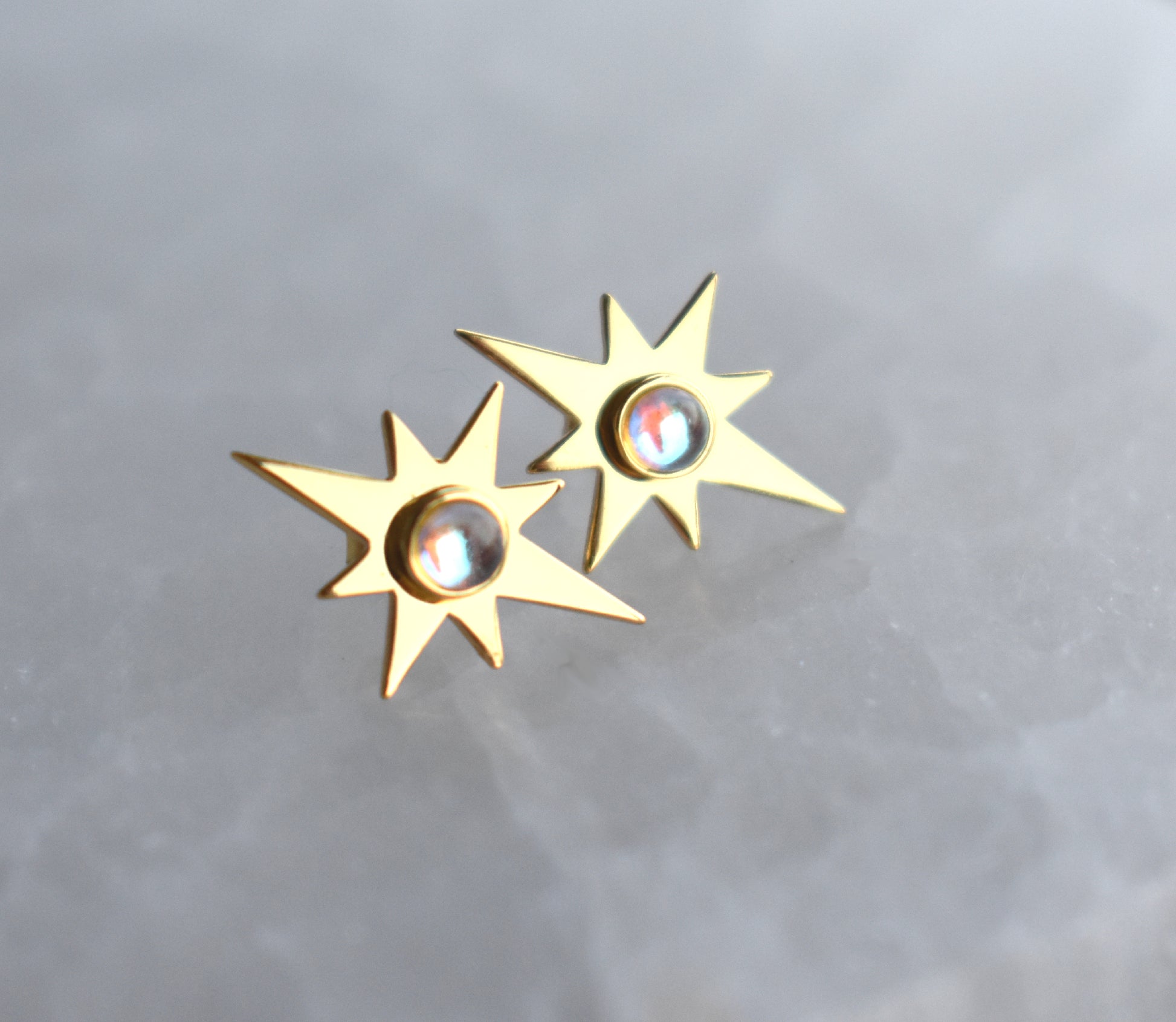 -North Star Measures 16mm x 13mm, with a 4mm Aura Crystal Stud center.( Aura Crystal stud is removeable so you can replace the north star center with any stud of your choice. This design looks gorgeous with a 4mm diamond or birthstone stud as well.)