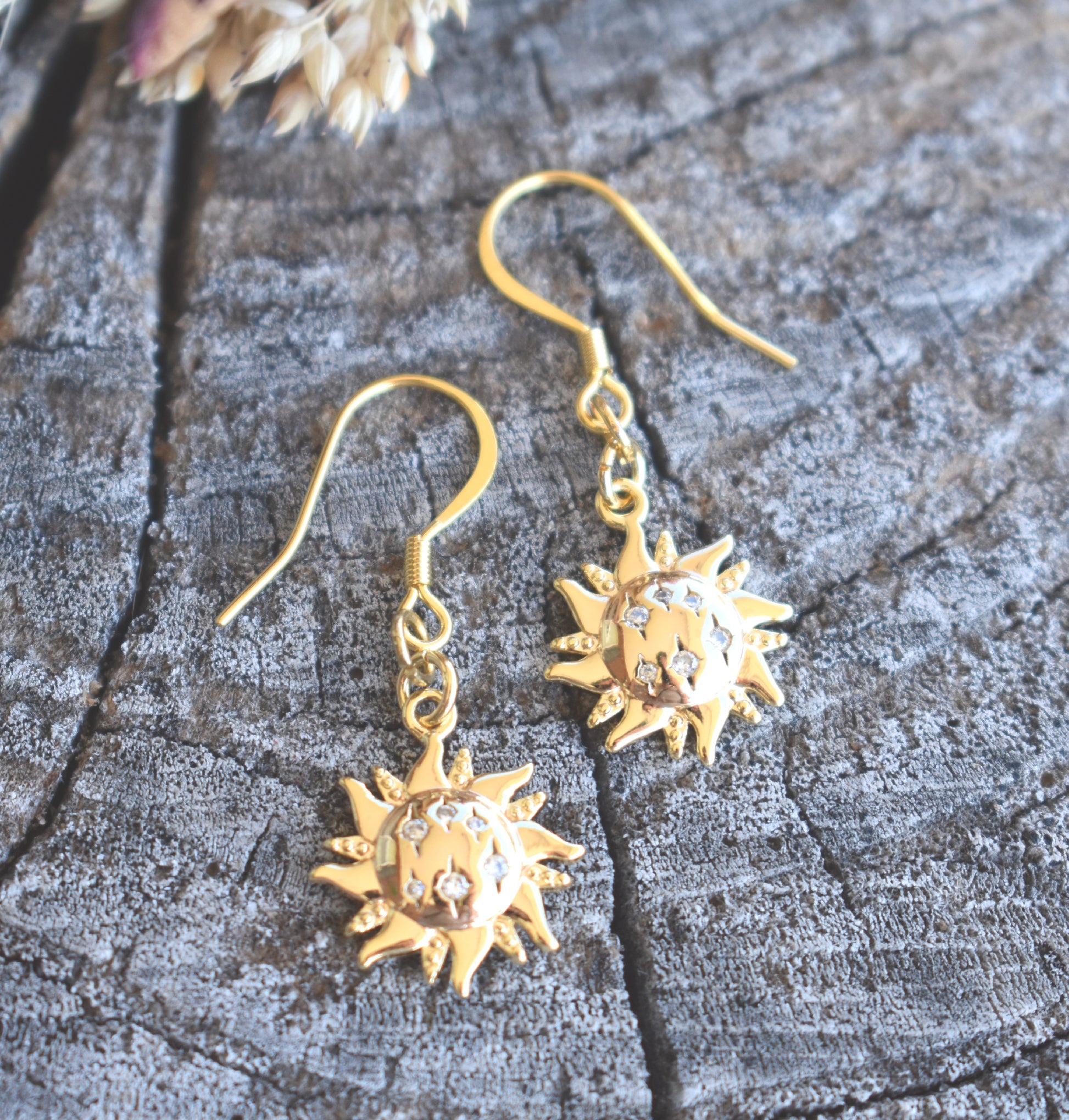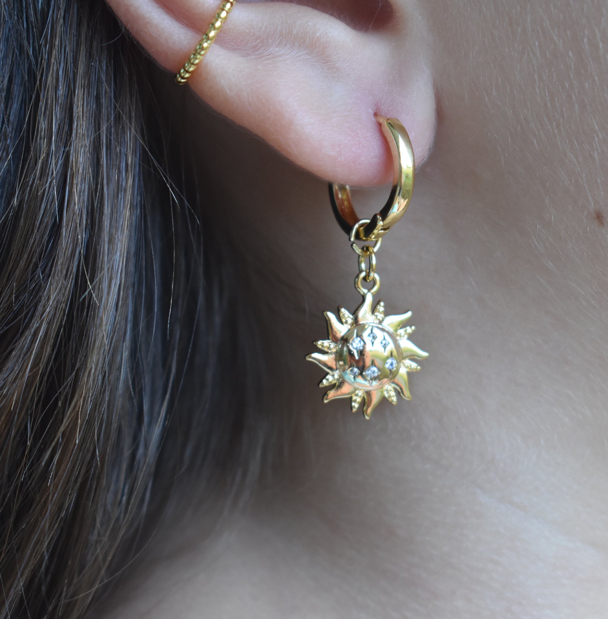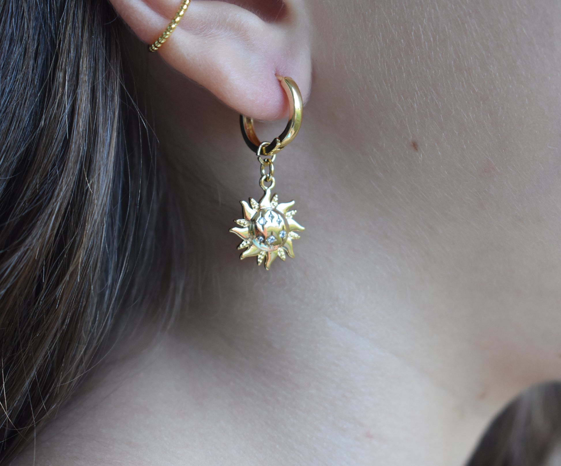-Gold Suns measure 15mm X 15mm with 1.5mm Diamond Pave crystals.