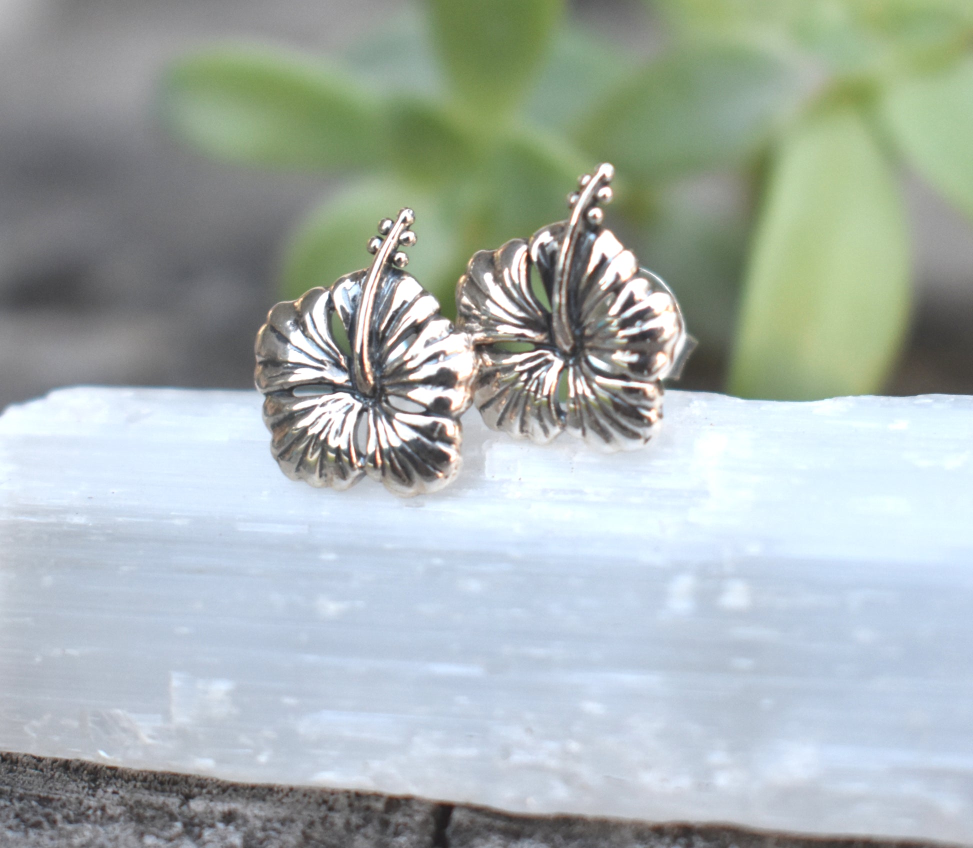 Hibiscus Earrings- Flower Earrings, Hibiscus Studs, Hibiscus Jewelry, Silver Hibiscus