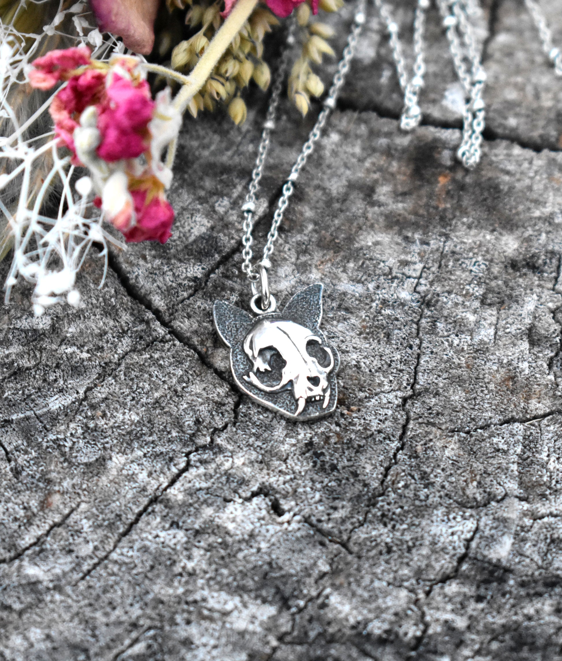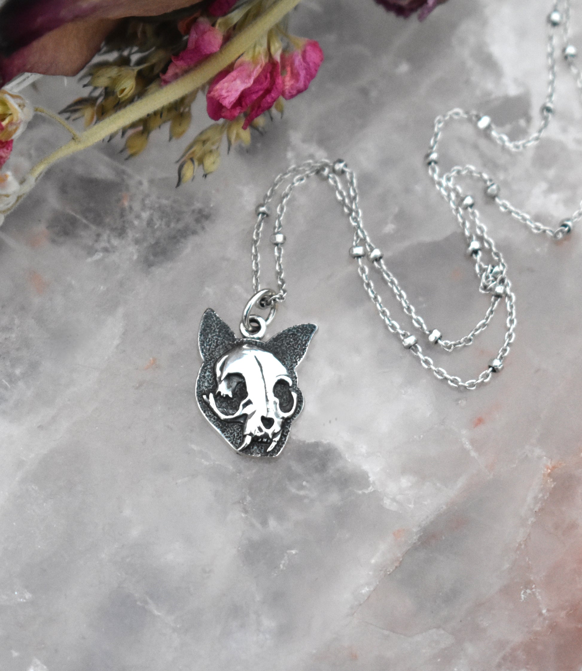 Kitty Skull Necklace-Sterling Silver, Cat Lovers-Cat Familiars