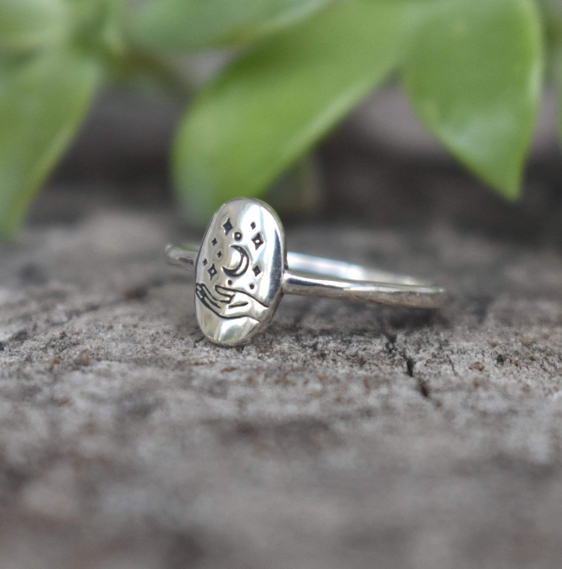 Fortune Telling Ring- Witchy Ring, Silver Hand Ring, Meditation Ring
