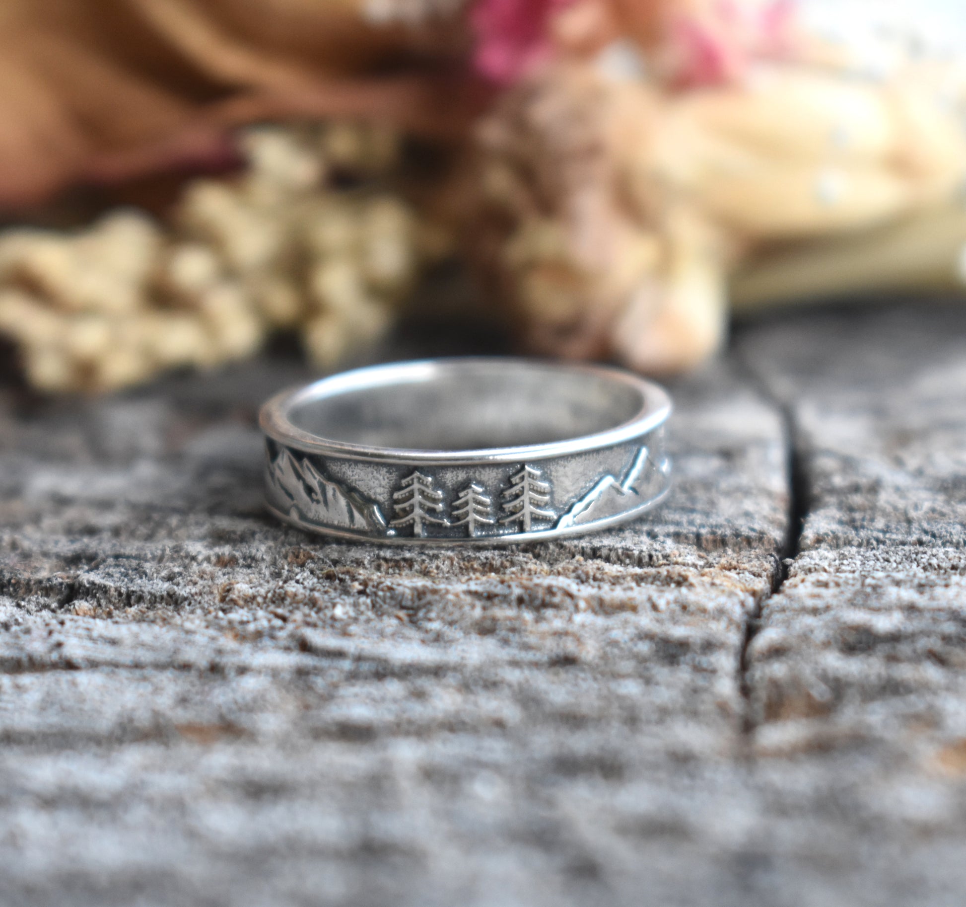Mountain, Trees & Sun Ring Band: