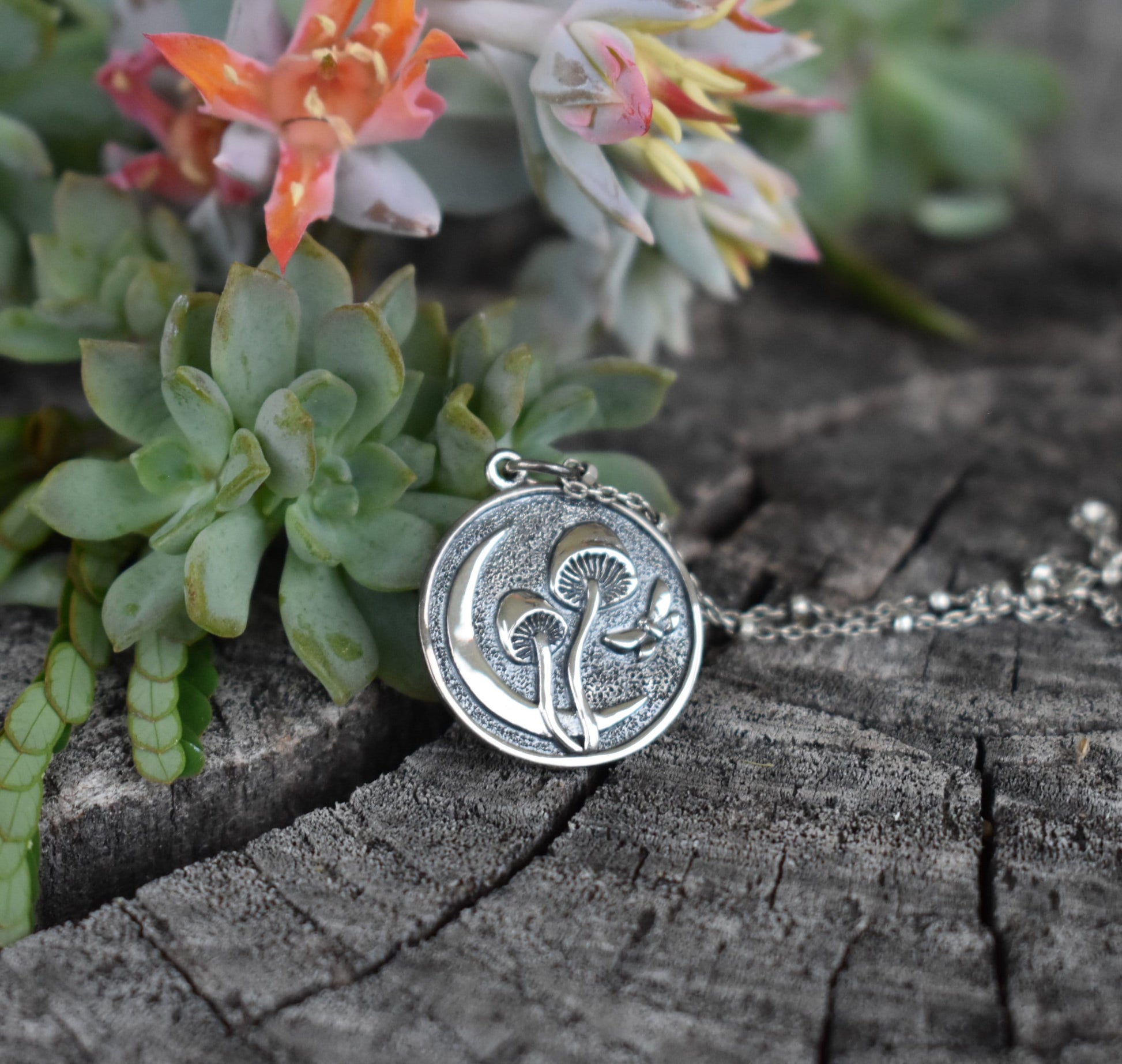 Mushroom Necklace- Moon necklace, Butterfly necklace- Silver Necklace