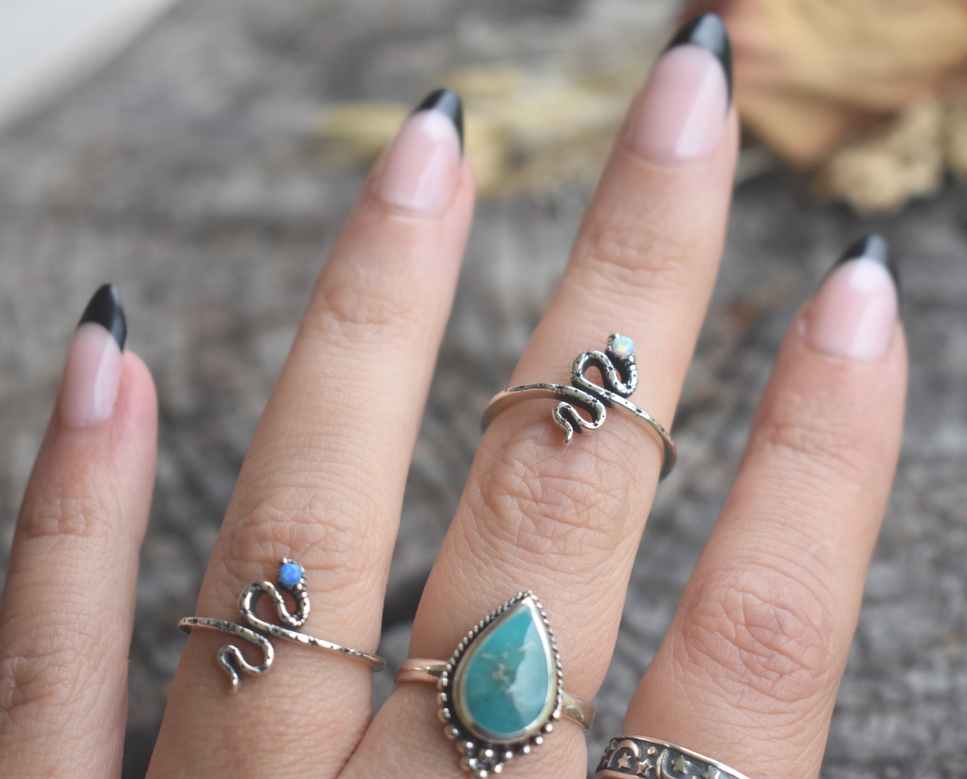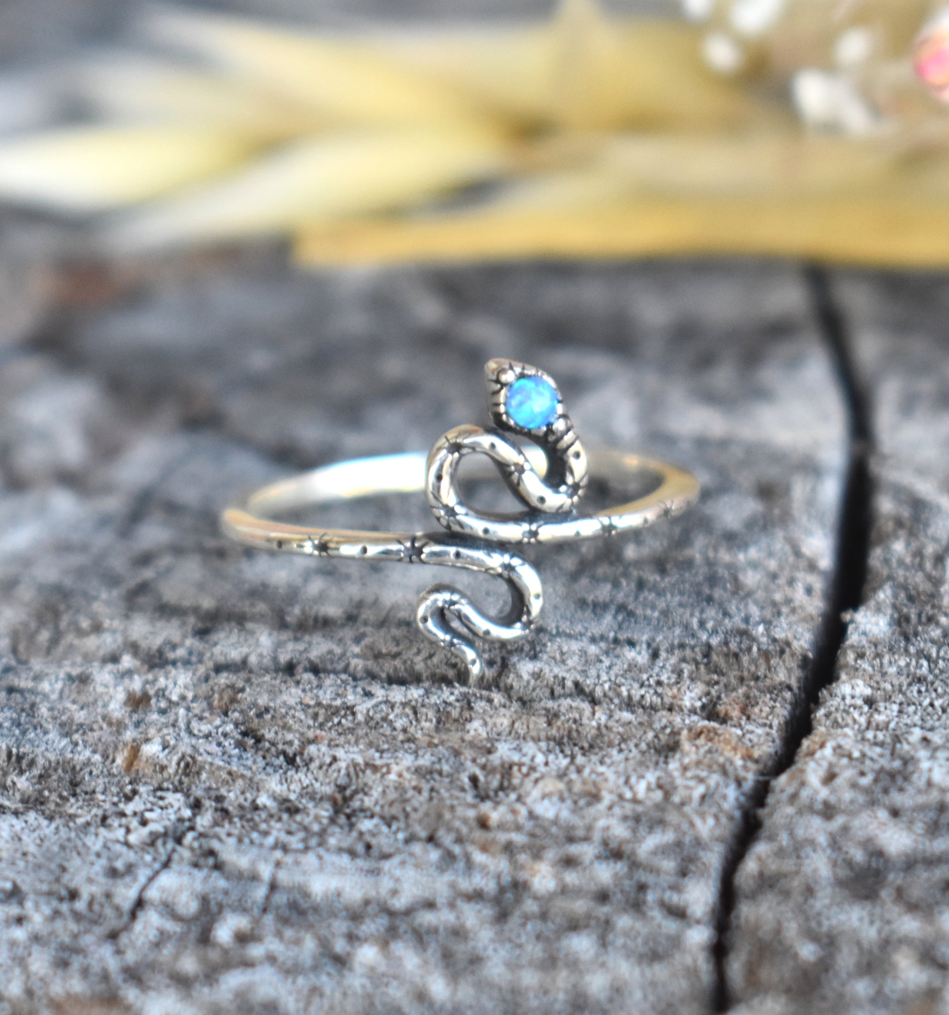 -Snake band measures approx. 2mm wide, 3mm white or blue fire opal