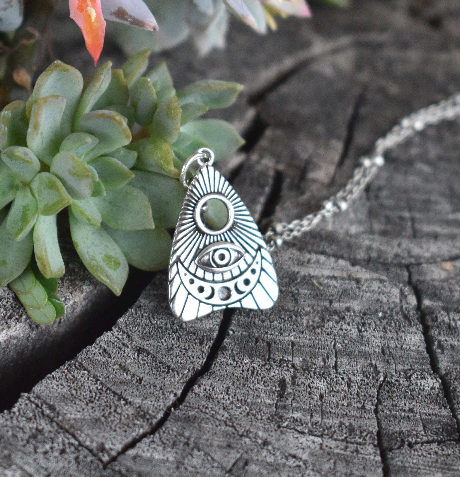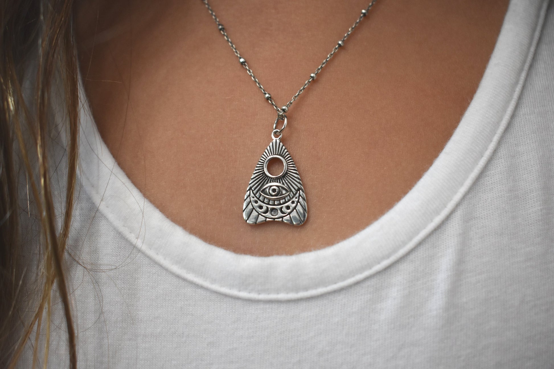 Planchette Necklace- Ouija Necklace, Spirit Board, Evil Eye Necklace-Silver Necklace