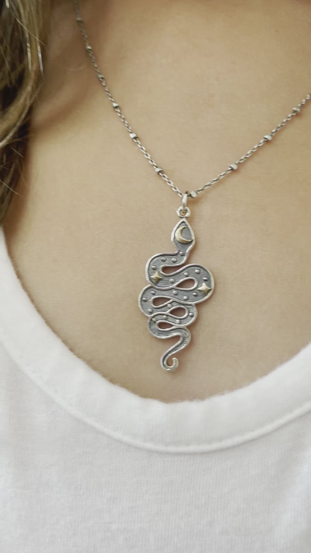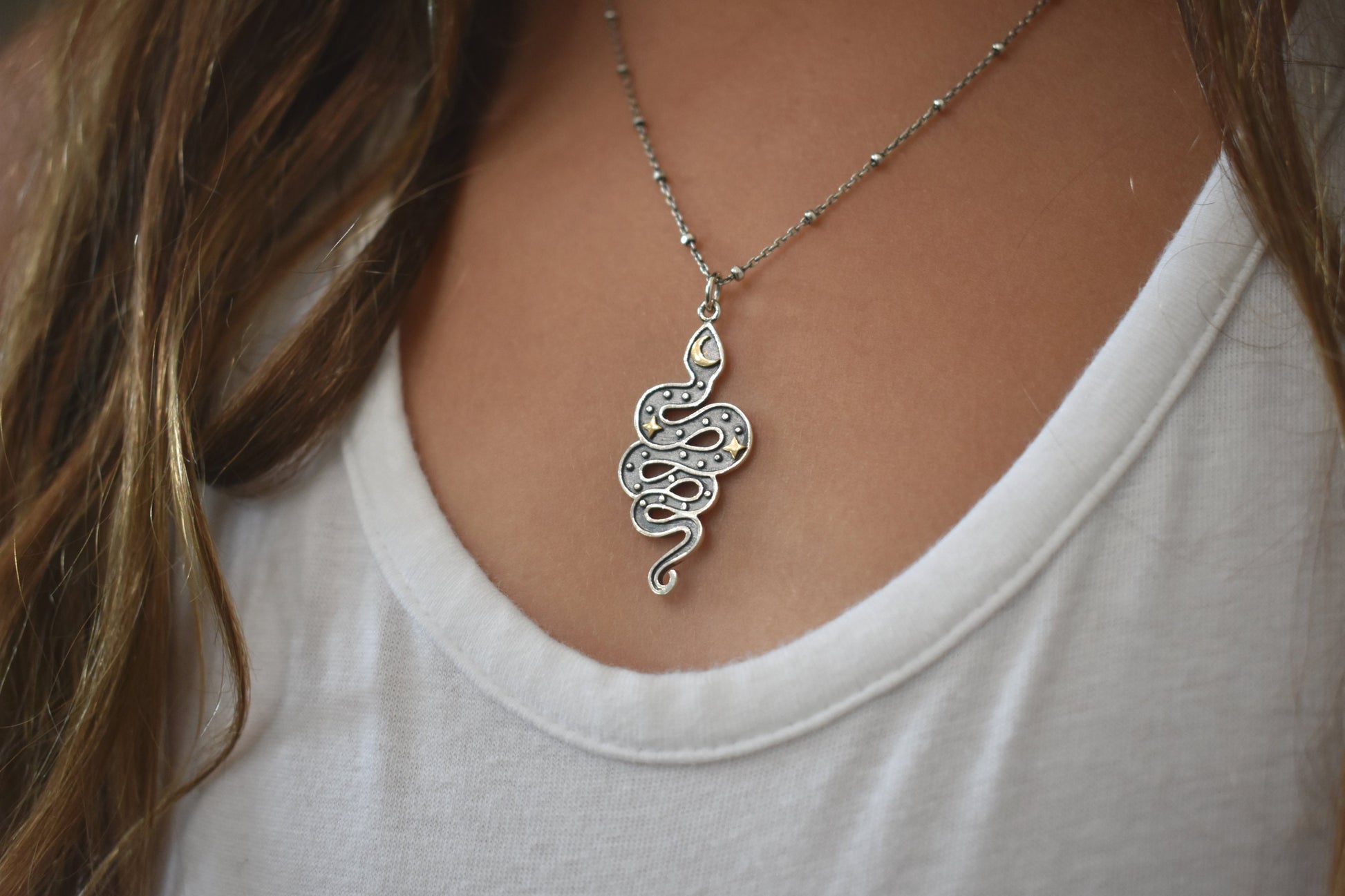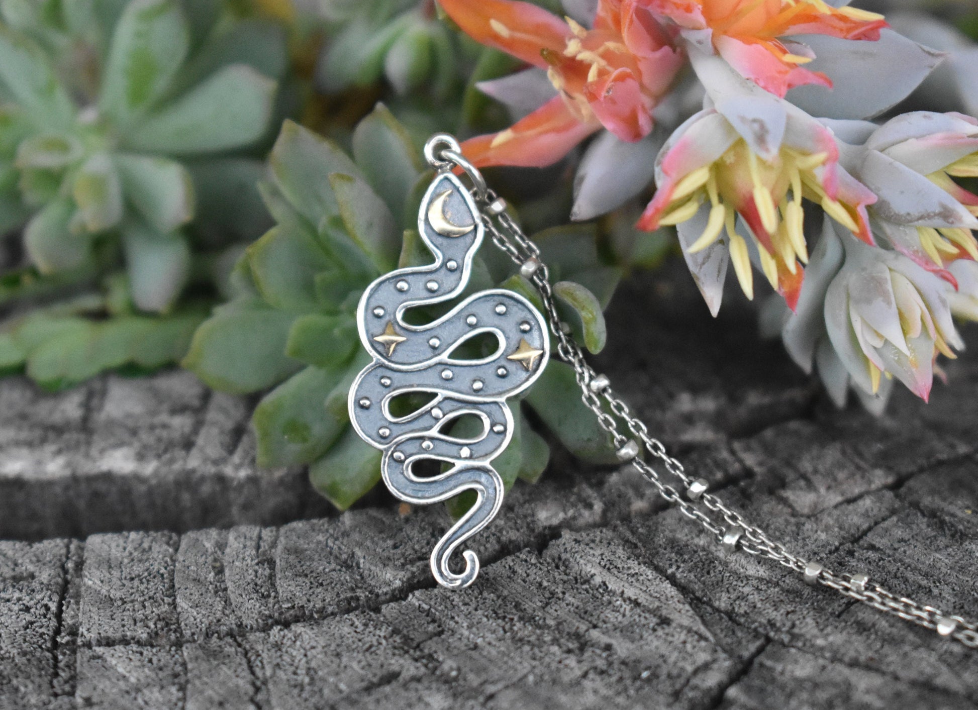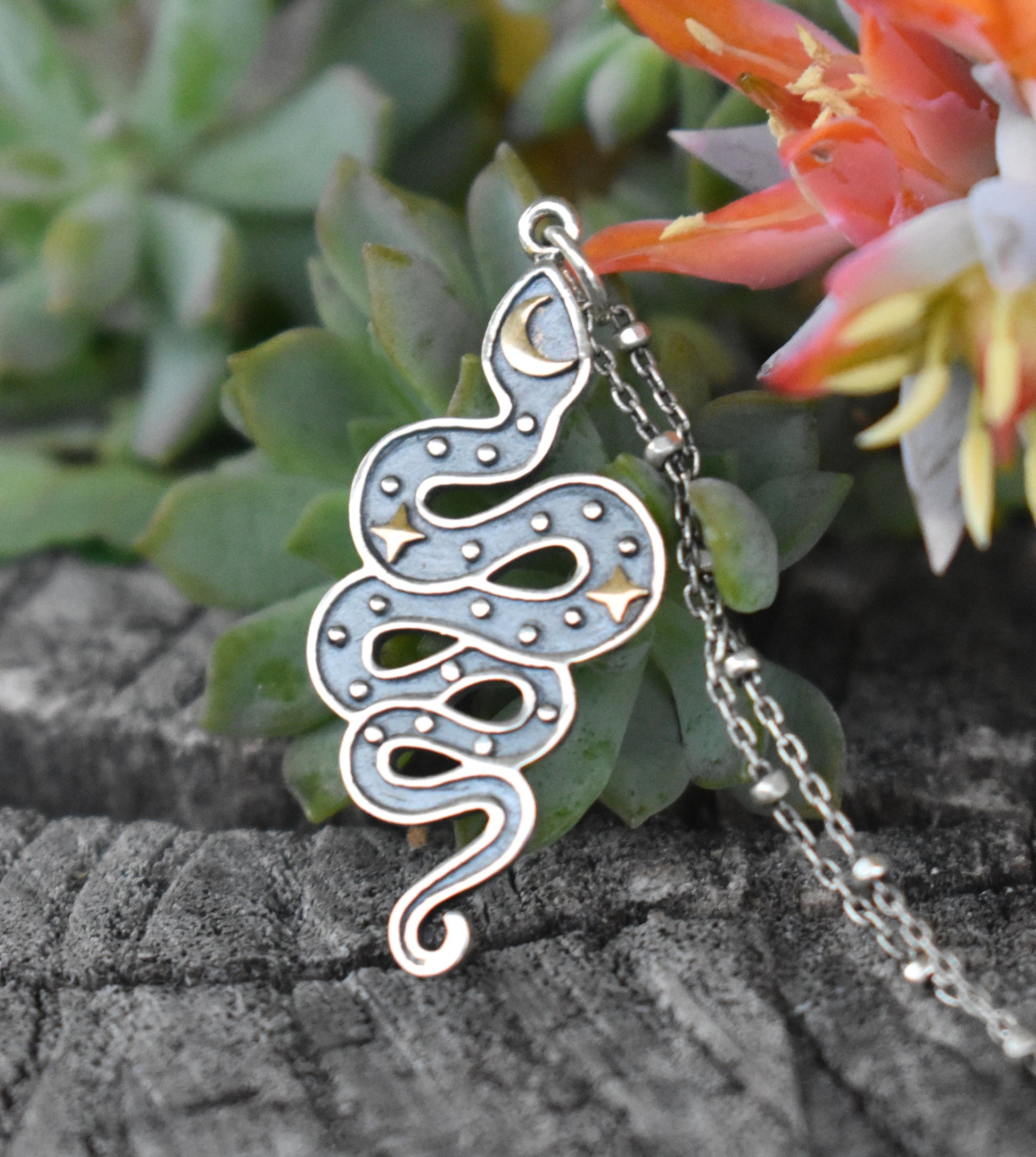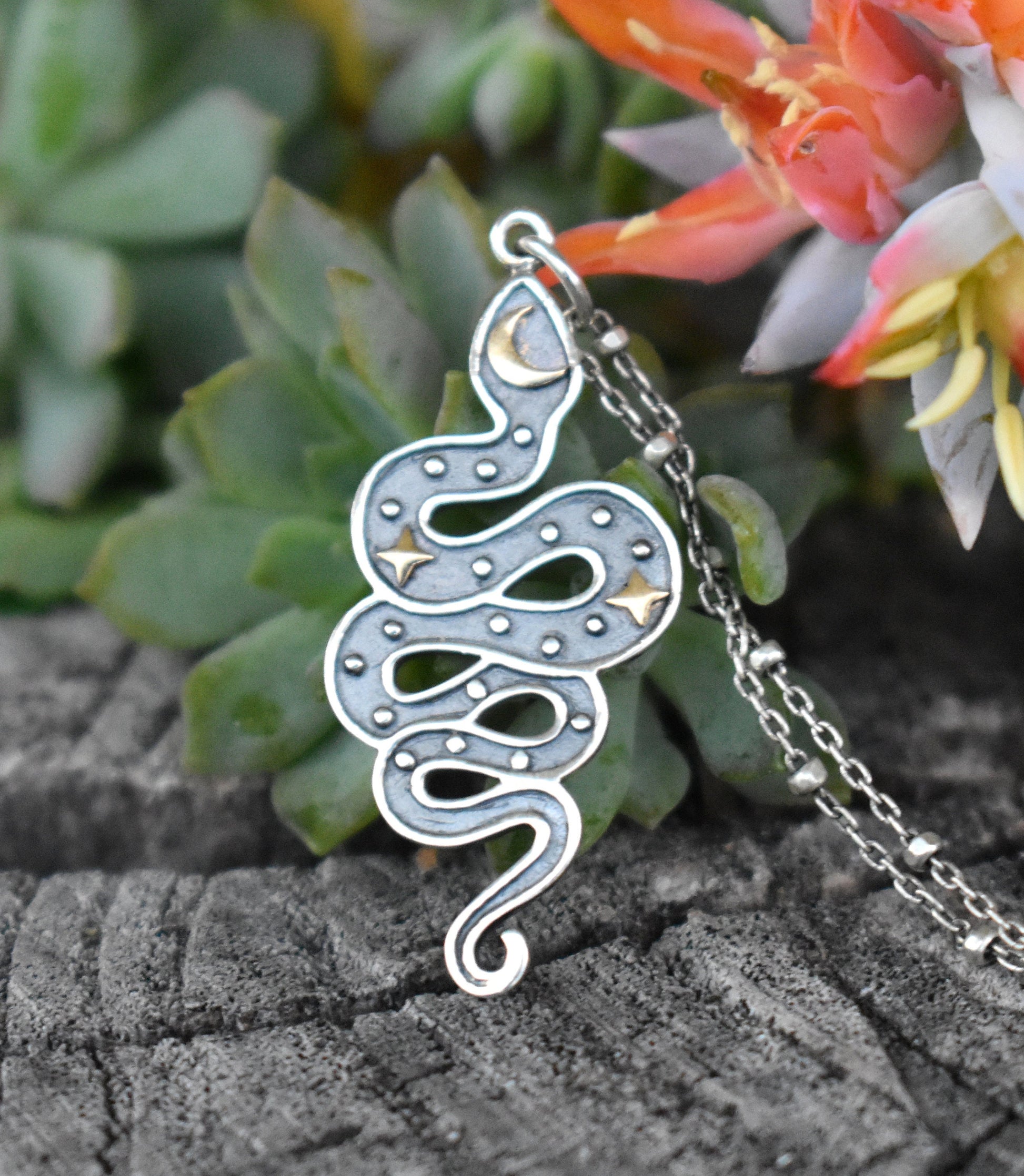 Snake Moon & Stars Necklace details:
