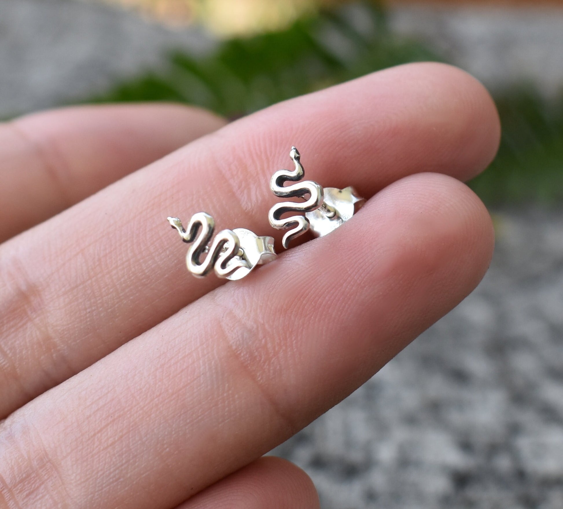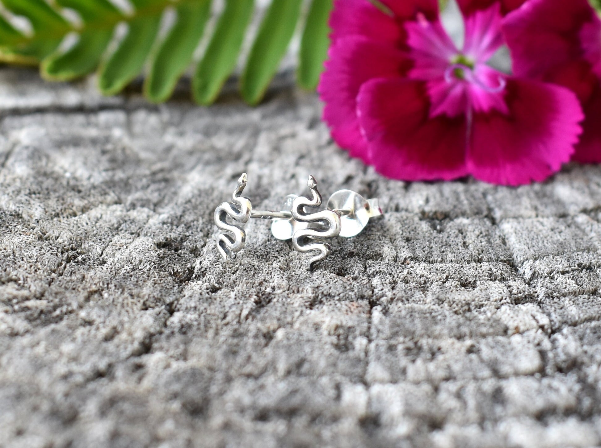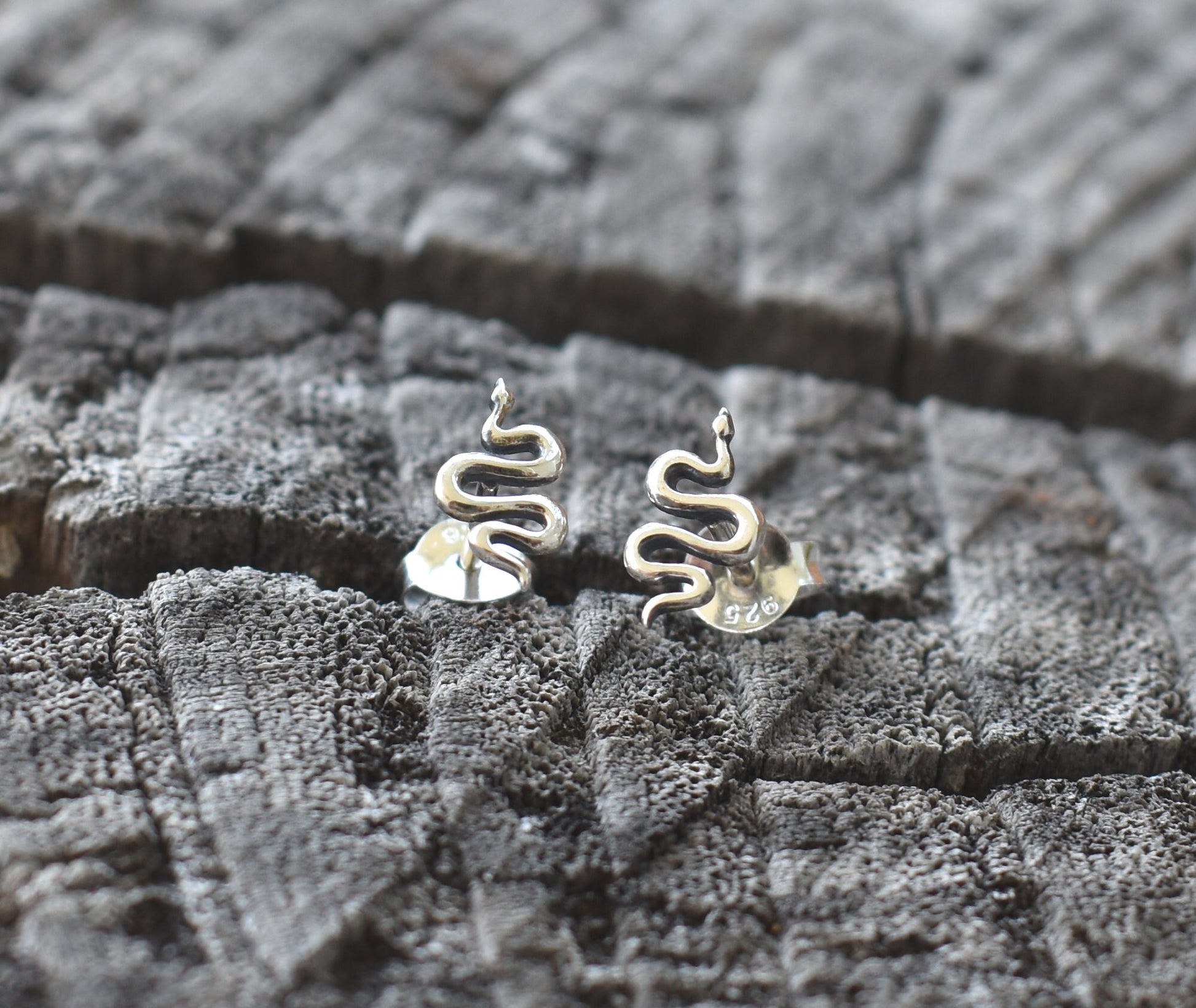Snake Earrings- Snake Posts, Snake Studs, Serpent Symbolism-Silver Snake Earrings