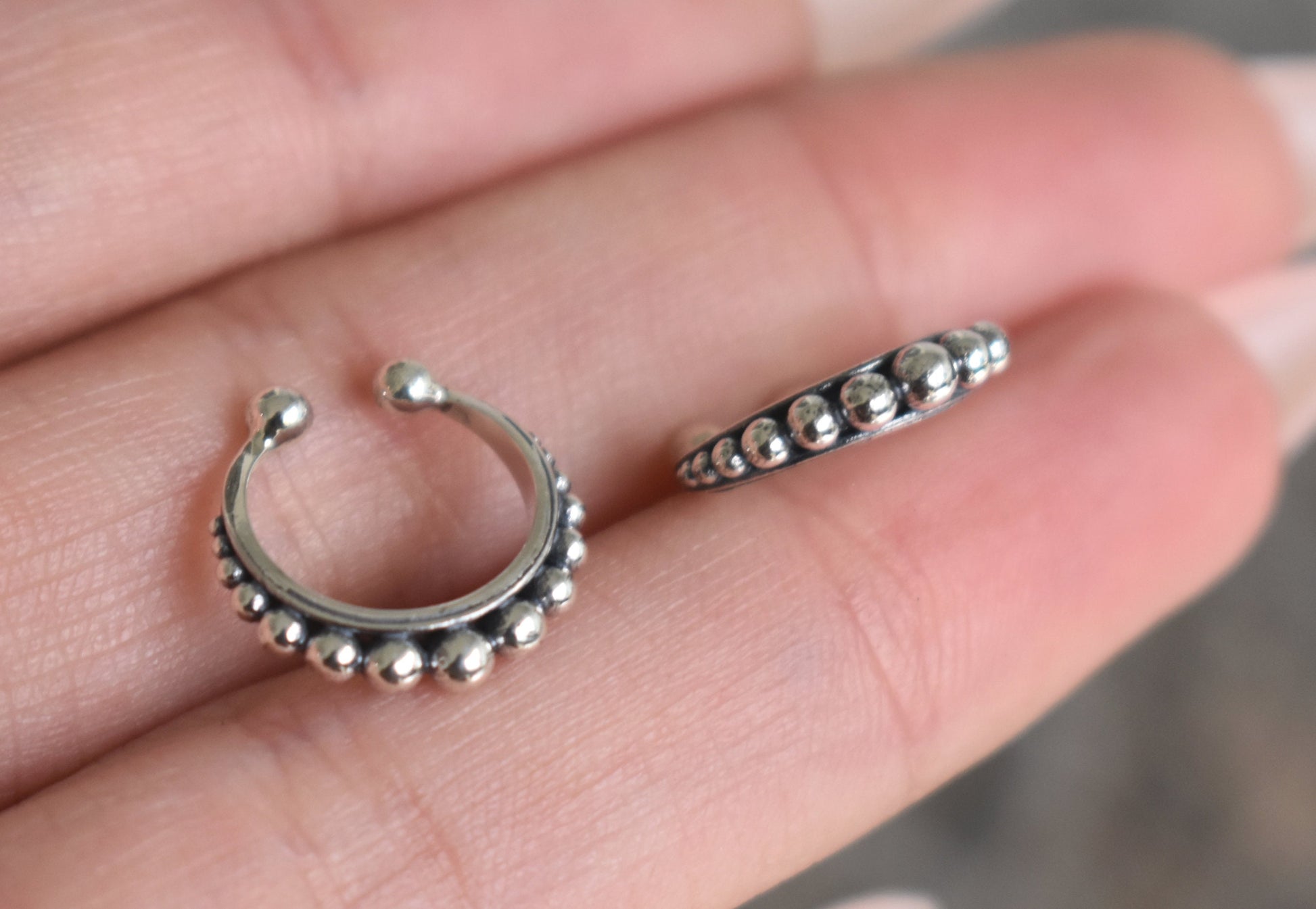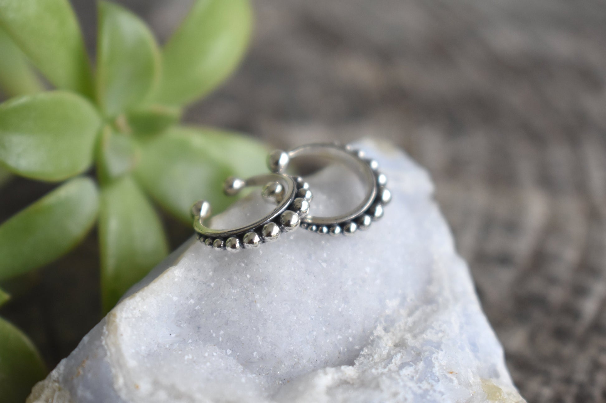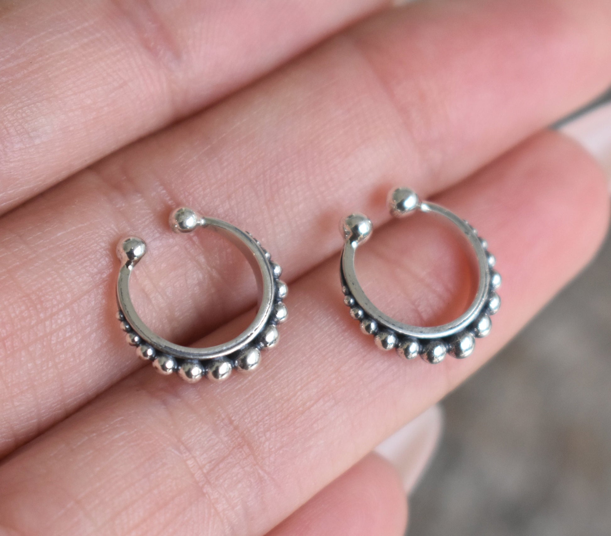 Ear Cuff- No Pierce Cuff, Ball Ear Cuff, Bali Earrings-Sterling Silver Cuff