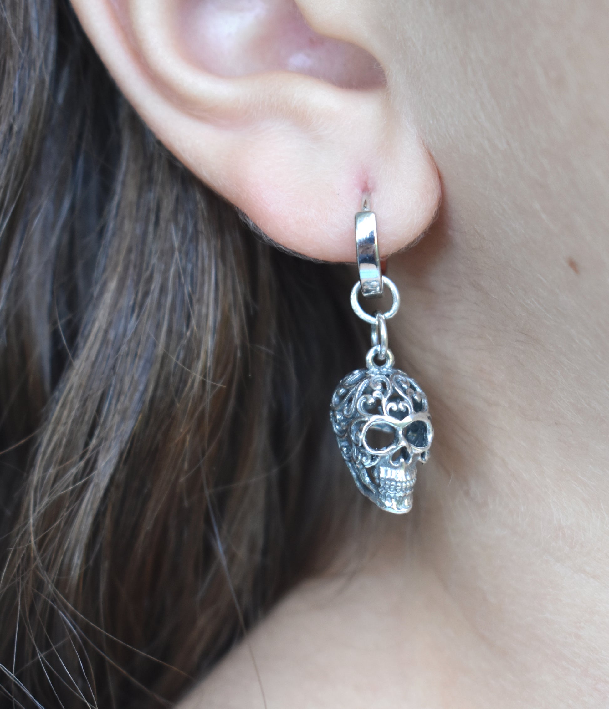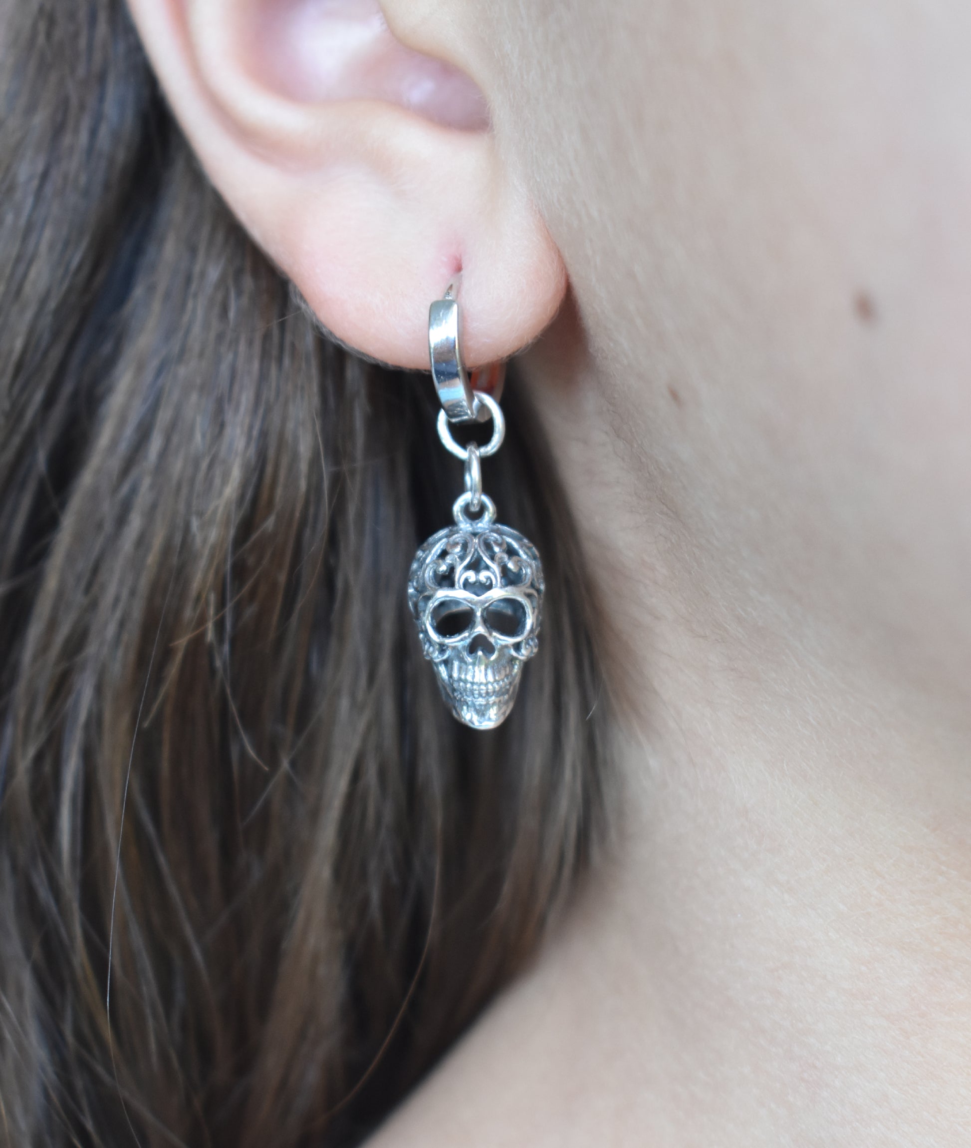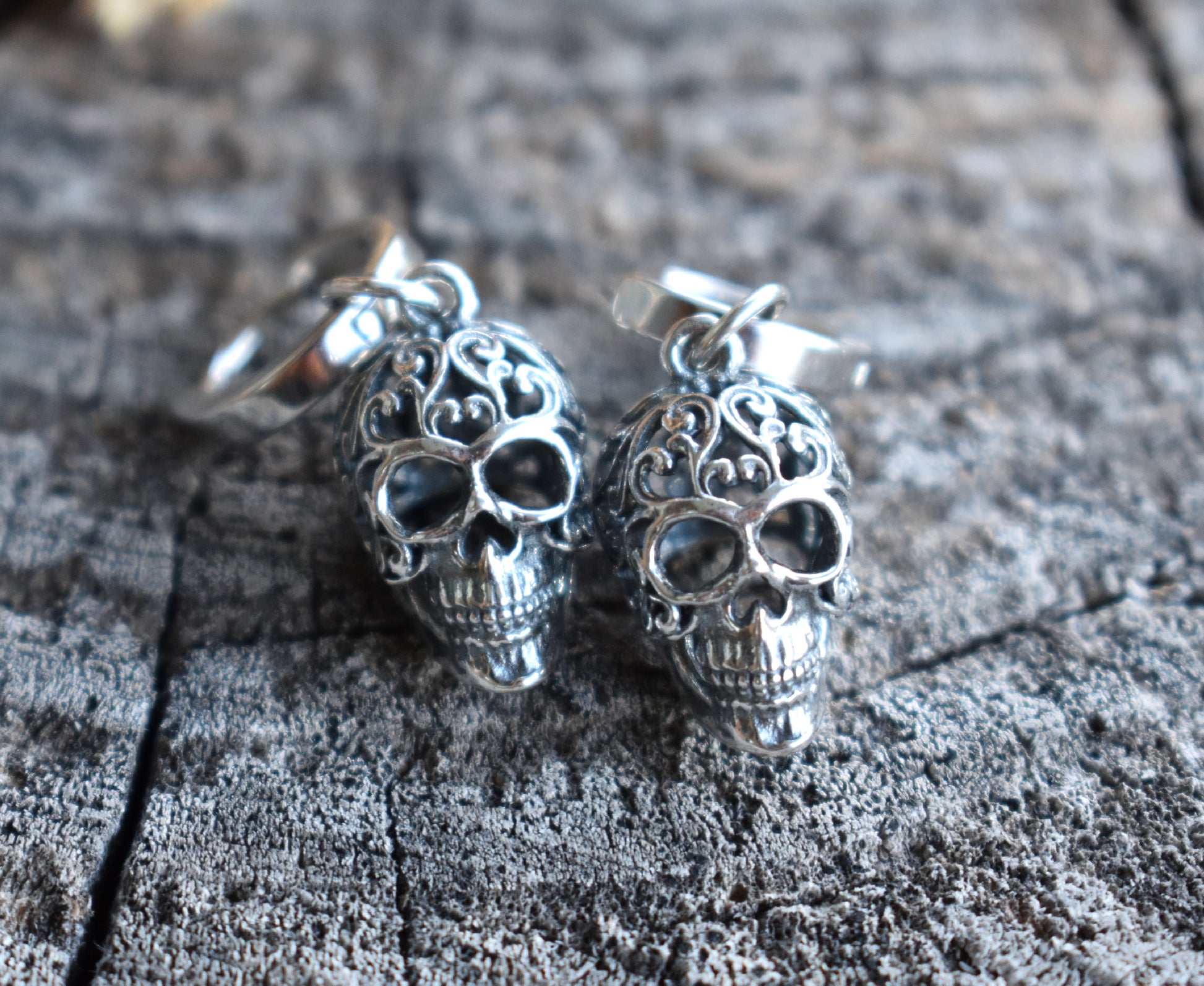 Sugar Skull Huggie Hoop Earrings-Sterling Silver