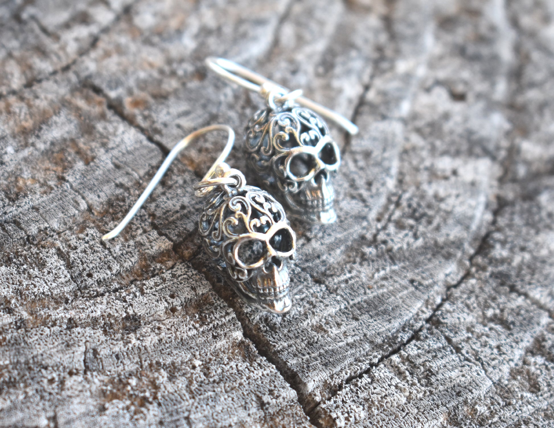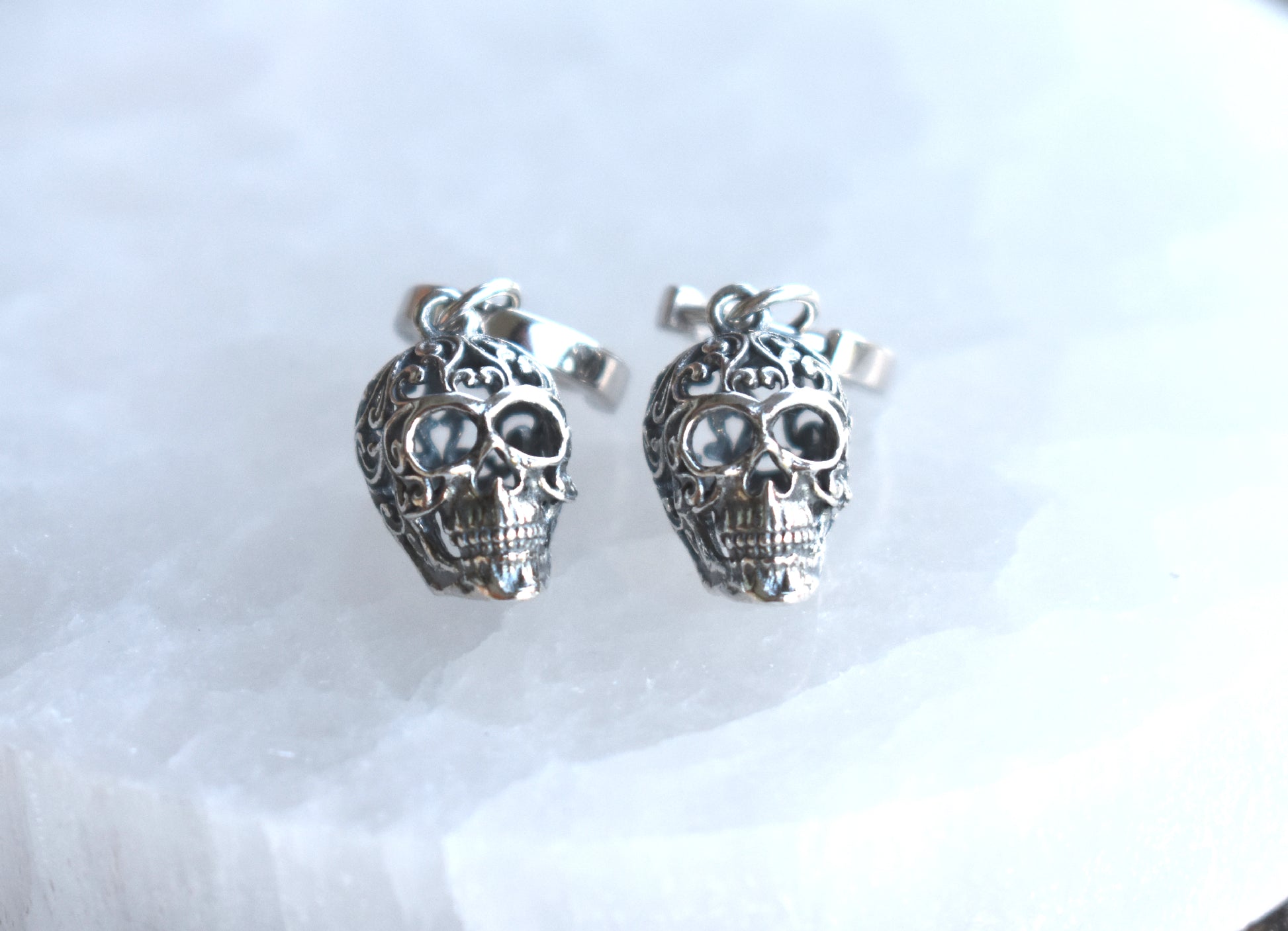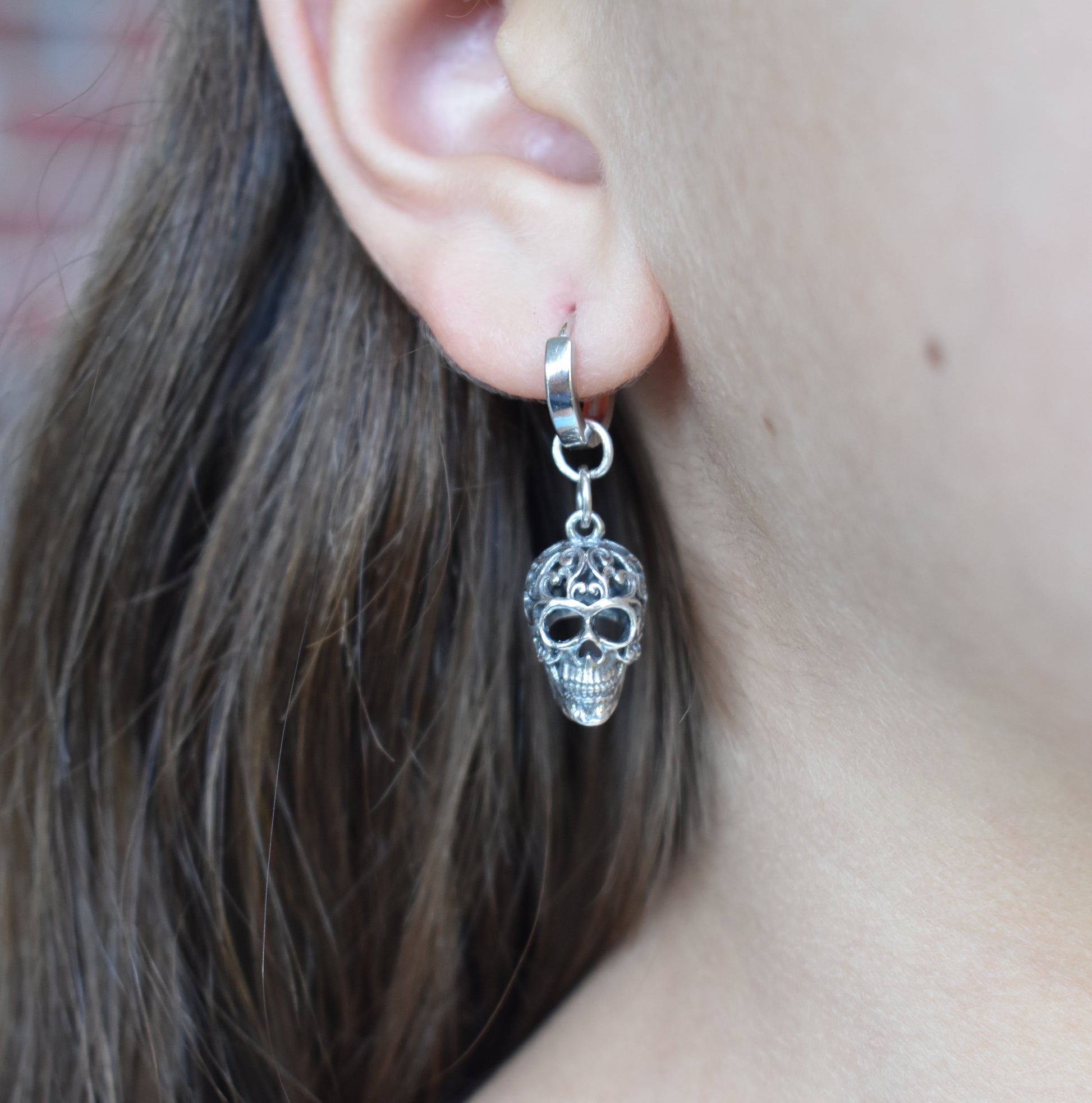 Sugar Skull Huggie Hoop Earrings-Sterling Silver