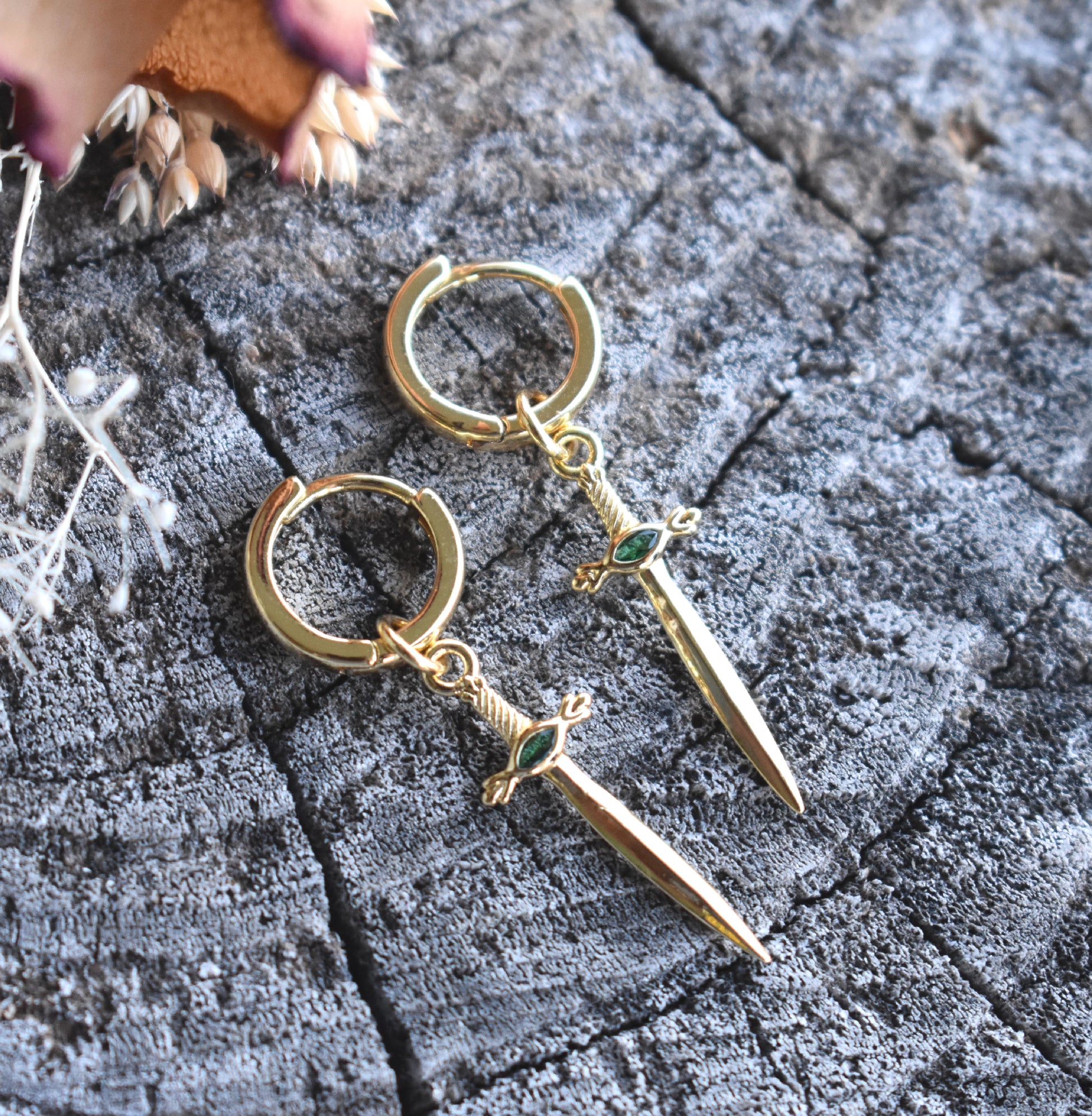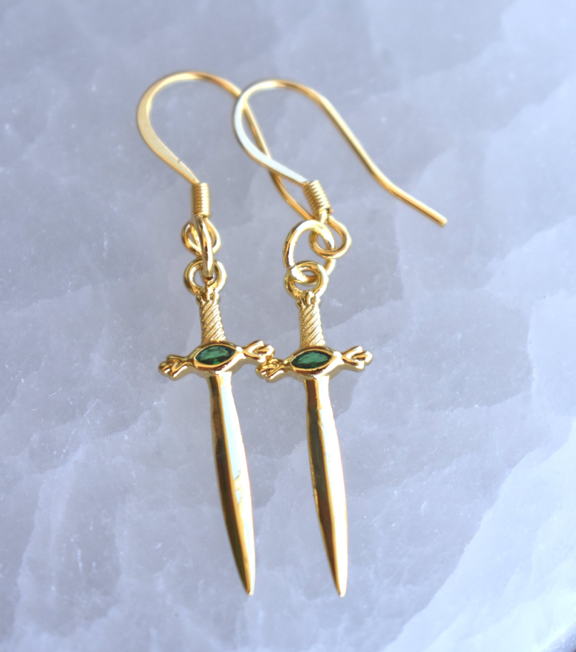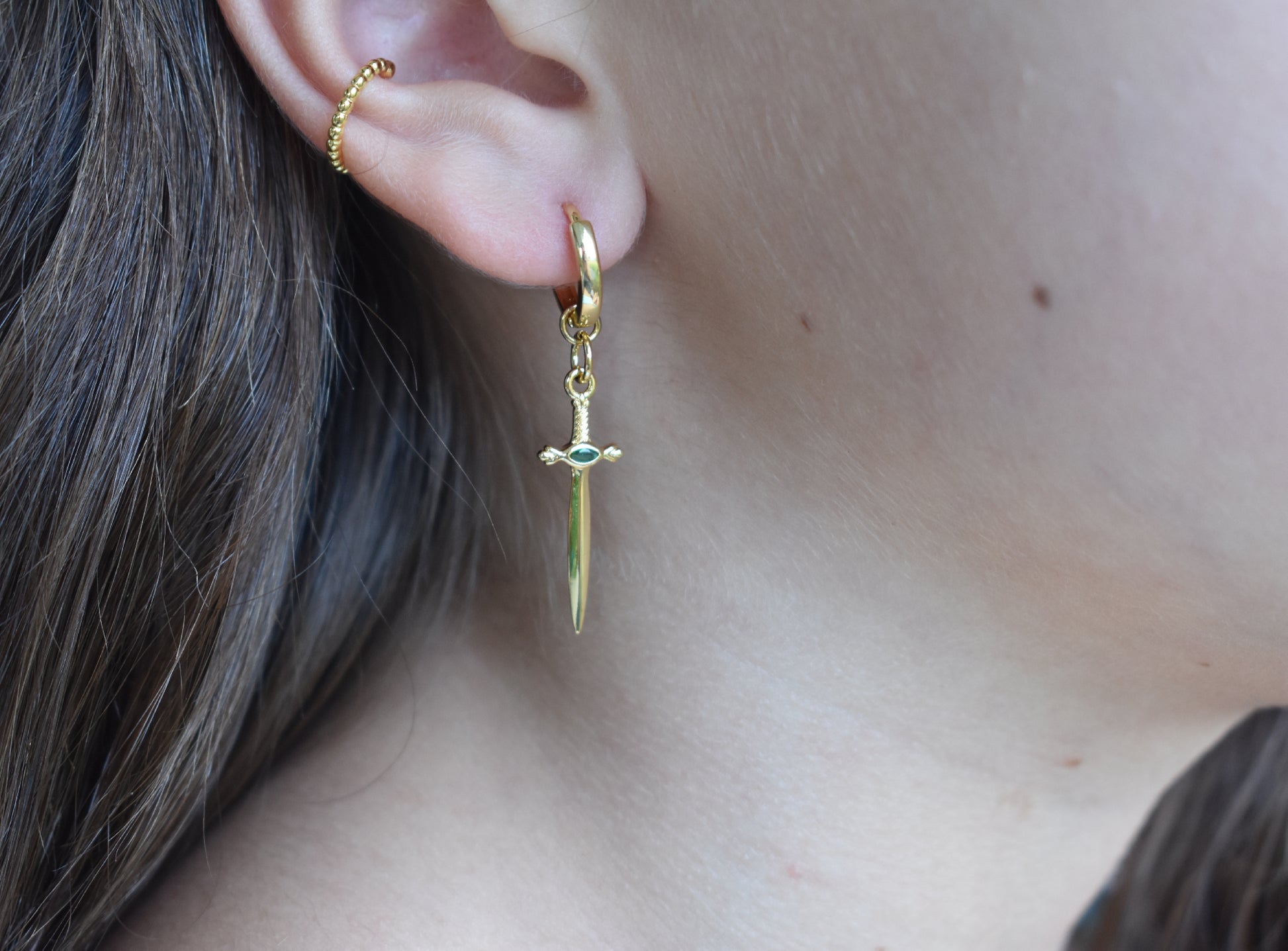 Gold Sword Huggie Hoops: